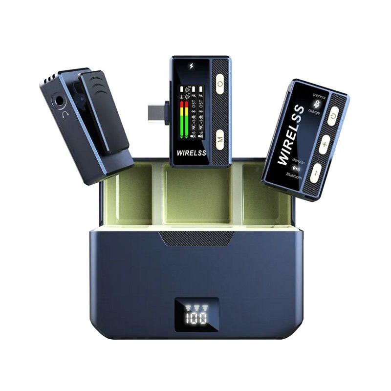 Ασύρματο mini επαναφορτιζόμενο πυκνωτικό μικρόφωνο για καταγραφή ήχου με Transmitter Lighting που συνδέεται εύκολα στο smarphone σας και τεχνολογία Noise Cancelling, ιδανικό για Vlogging, Podcast, live streaming, online διδασκαλία/meetings, συνεντεύξεις, επαγγελματικά βίντεο κά.