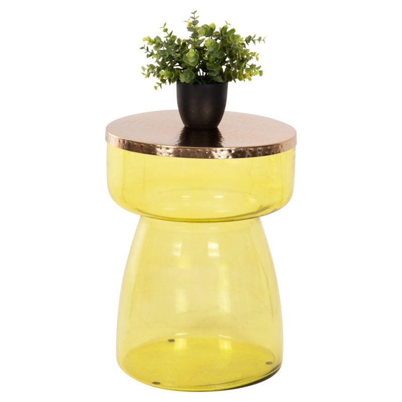 Το βοηθητικό τραπεζάκι FB99731 για το σαλόνι είναι μια από τις νέες προσθήκες στην γκάμα μας. Πρόκειται για ένα τραπεζάκι στρογγυλό με διάφανη γυάλινη κυλινδρική βάση σε ΑΝΟΙΧΤΟ ΠΡΑΣΙΝΟ χρώμα. Το top είναι μεταλλικό σε ΧΡΥΣΟ χρώμα. Αυτό το τραπεζάκι θα το λατρέψετε με την πρώτη ματιά. Ιδανικό τόσο για το σπίτι, όσο και για επαγγελματικούς χώρους.