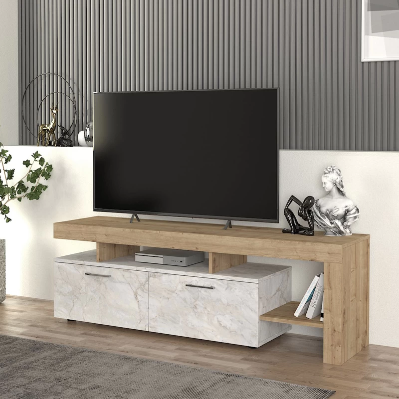 Έπιπλο τηλεόρασης Acnes Megapap χρώμα λευκό εφέ μαρμάρου – sapphire oak 160x40x53εκ.