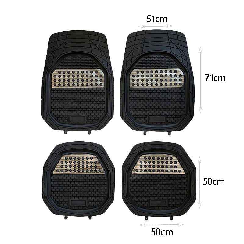 Το σετ αποτελείται από 4 ξεχωριστά πατάκια, 2 για τα μπροστινά καθίσματα και 2 για τα πίσω. Είναι αντιολισθητικά και αδιάβροχα. Ταιριάζουν σε όλων των ειδών τα αυτοκίνητα καθώς μπορείτε άνετα να τα κόψετε με ψαλίδι. Είναι φτιαγμένα από ελαστικό PVC.