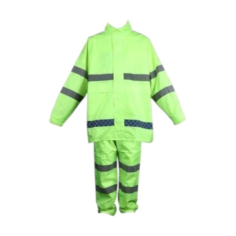 Αδιάβροχη φόρμα εργασίας, σε κίτρινο φωσφορίζον χρώμα με ανακλαστικές λωρίδες στο επάνω και κάτω μέρος.