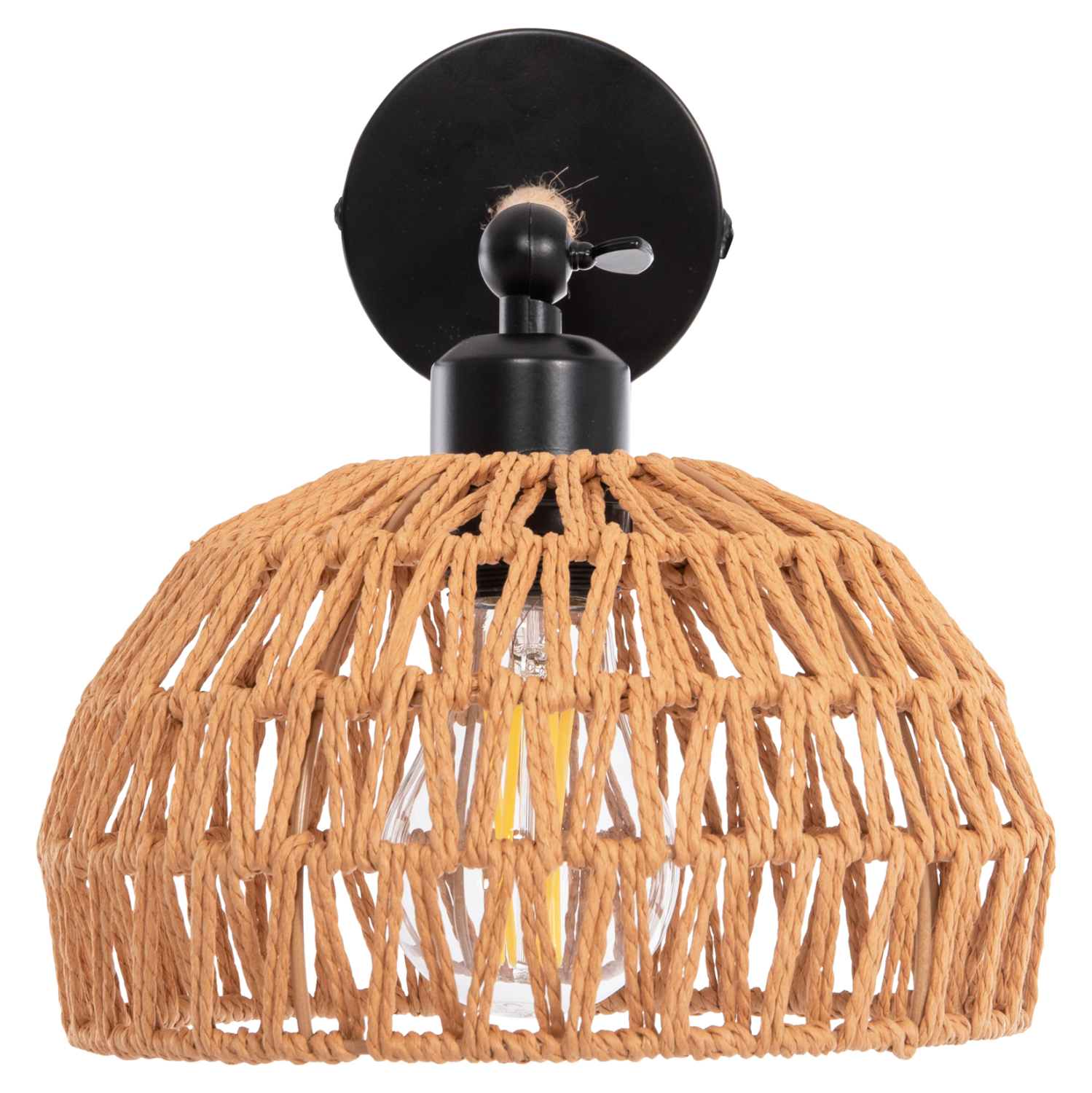 Η απλίκα τοίχου FB94475 είναι μια όμορφη πρόταση αλλά με αναφορές στο κλασικό κρεμαστό σχέδιο. Το καπέλο του φωτιστικού είναι ημισφαιρικό με επένδυση σχοινιού κάνναβης που αφήνει το φως να διαχέεται σε κάθε κατεύθυνση δημιουργώντας μια ατμόσφαιρα μοναδική, ενώ ο βραχίονας είναι ρυθμιζόμενος με περιστροφική «πεταλούδα» (βίδα).