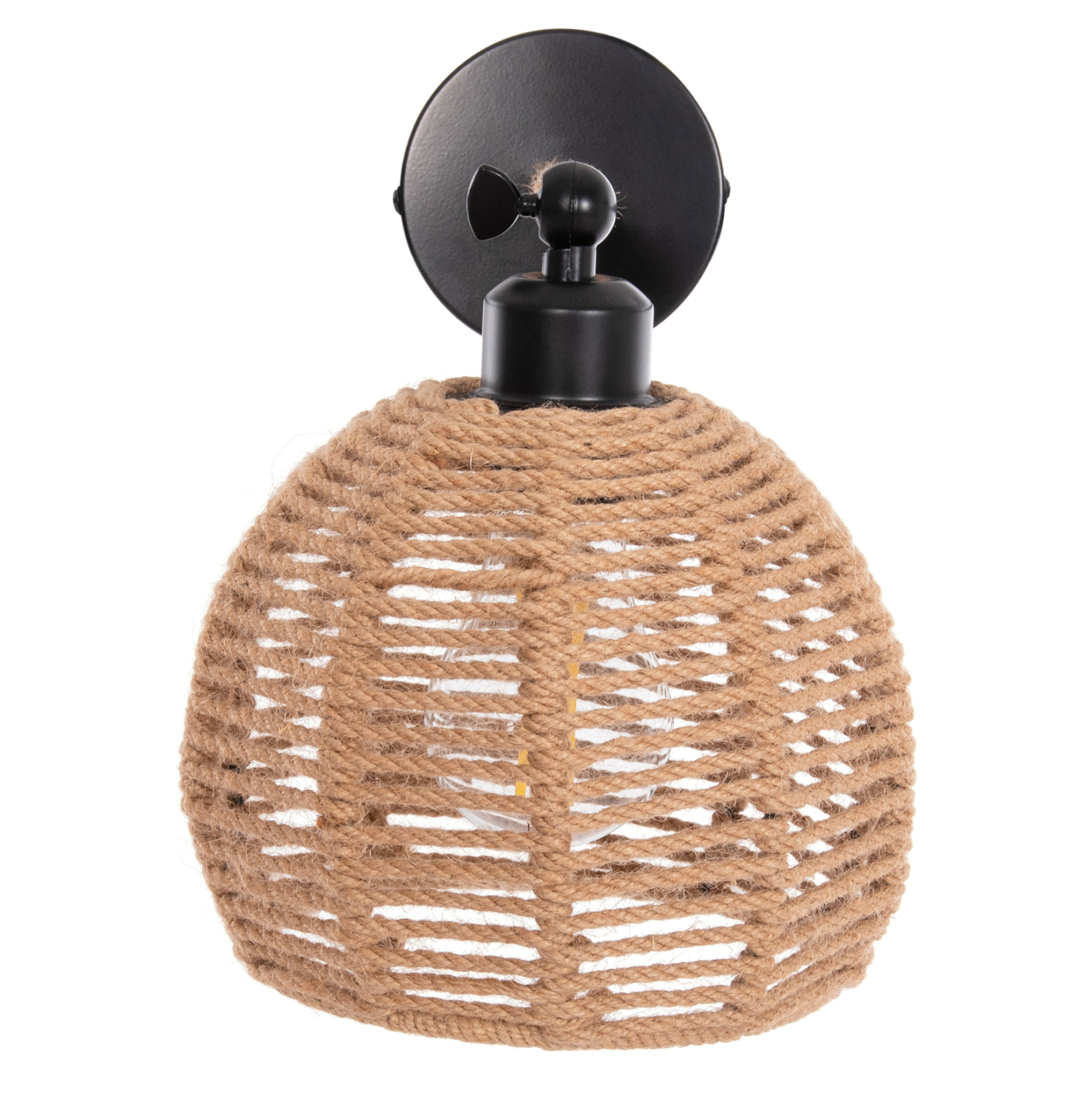 Η απλίκα τοίχου FB94483 είναι μια όμορφη πρόταση αλλά με αναφορές στο κλασικό κρεμαστό σχέδιο. Το καπέλο του φωτιστικού είναι ημισφαιρικό με επένδυση σχοινιού κάνναβης που αφήνει το φως να διαχέεται σε κάθε κατεύθυνση δημιουργώντας μια ατμόσφαιρα μοναδική, ενώ ο βραχίονας είναι ρυθμιζόμενος με περιστροφική «πεταλούδα» (βίδα).