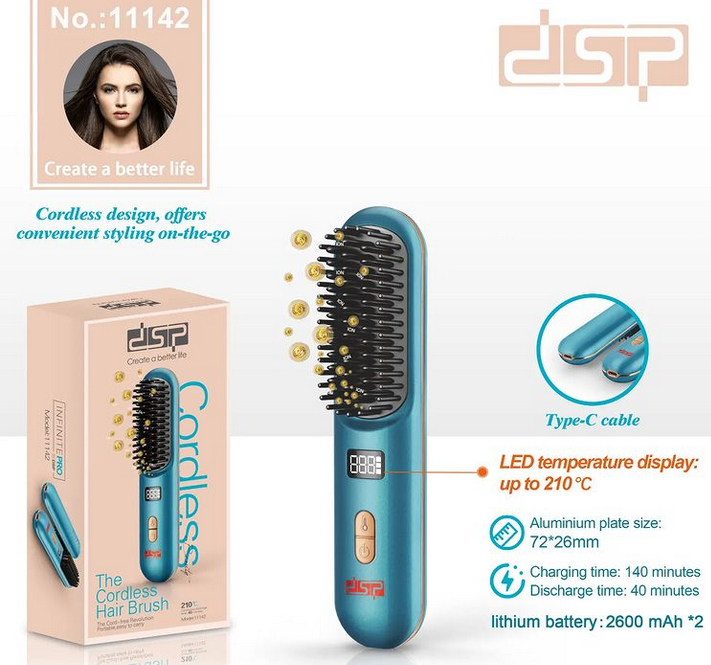 Πρωτοποριακή ηλεκτρική βούρτσα μαλλιών DSP με ασύρματη λειτουργία και μεγάλη αυτονομία μπαταρίας για απόλυτη άνεση χρήσης.