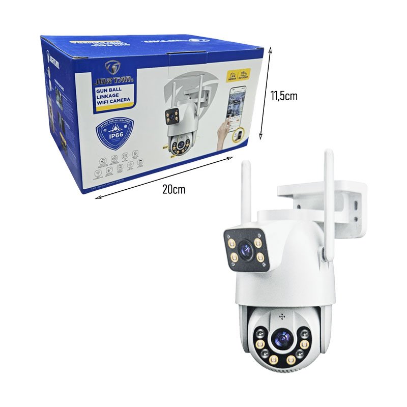 Κατάλληλη για εξωτερική χρήση χάρη στη στεγανότητα IP66, που την καθιστά ανθεκτική στη βροχή και στη σκόνη. Διαθέτει περιστροφή, μικρόφωνο και μεγάφωνο για αμφίδρομη επικοινωνία, ενώ υποστηρίζει αποθήκευση σε κάρτα SD ή cloud.