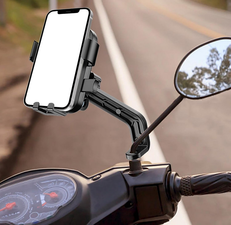 Βάση στήριξης smartphone ποδηλάτου/μοτοσυκλέτας με κεφαλή ρυθμιζόμενης κλίσης και τοποθέτηση στον βραχίονα του καθρέπτη.