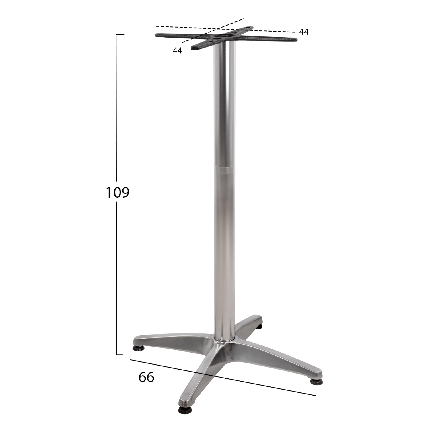 Βάση μπάρ τετράνυχη FB9450 κατασκευασμένη από αλουμίνιο σε απόχρωση χρωμίου, με ρεγουλατόρους.