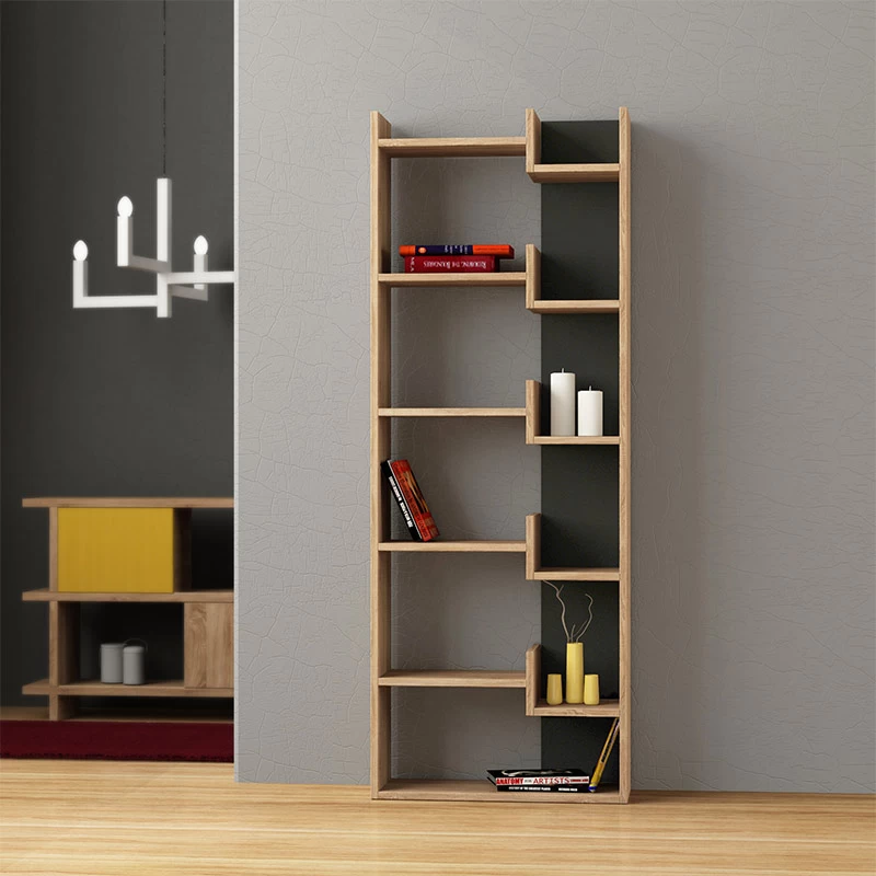 Βιβλιοθήκη μελαμίνης Oppa Megapap χρώμα sapphire oak/ανθρακί 60x22x162εκ.