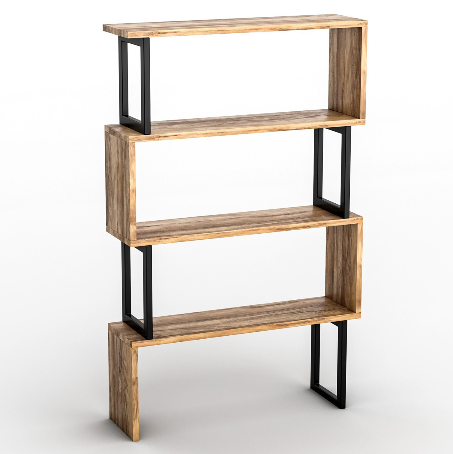Βιβλιοθήκη κατασκευασμένη από μεταλλικό σκελετό σε μαύρη απόχρωση και υψηλής ποιότητας μελαμίνη 18 χιλιοστών σε καρυδί απόχρωση.