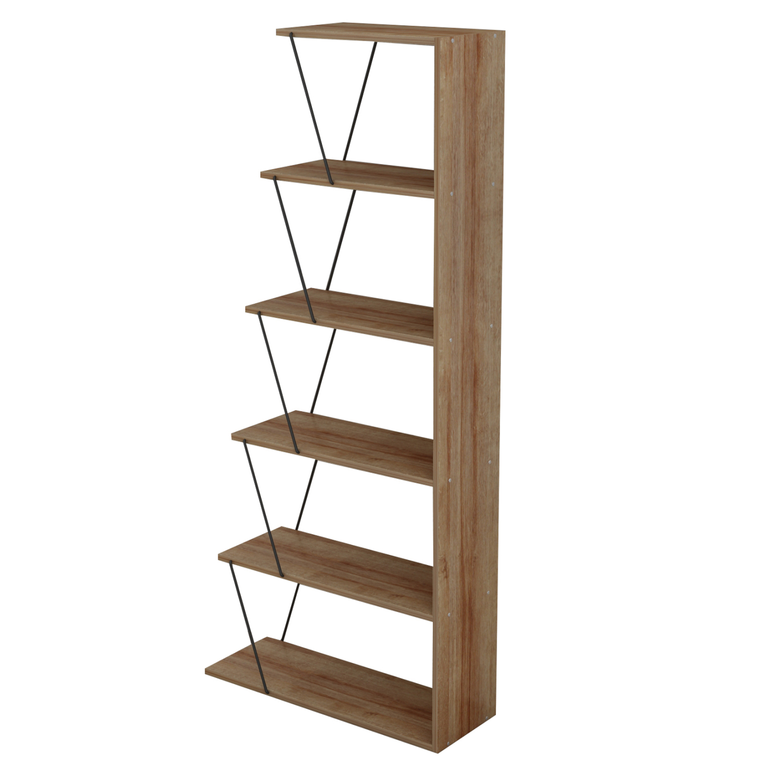 Διαθέτει 4 ράφια τοποθέτησης σε σχήμα σκάλας, τα οποία στηρίζονται μεταξύ τους με μεταλλικές ράβδους σύν ένα ράφι που είναι η κάτω επιφάνεια της βιβλιοθήκης, ενώ οι διαστάσεις της την καθιστούν βολική για πολλούς χώρους.