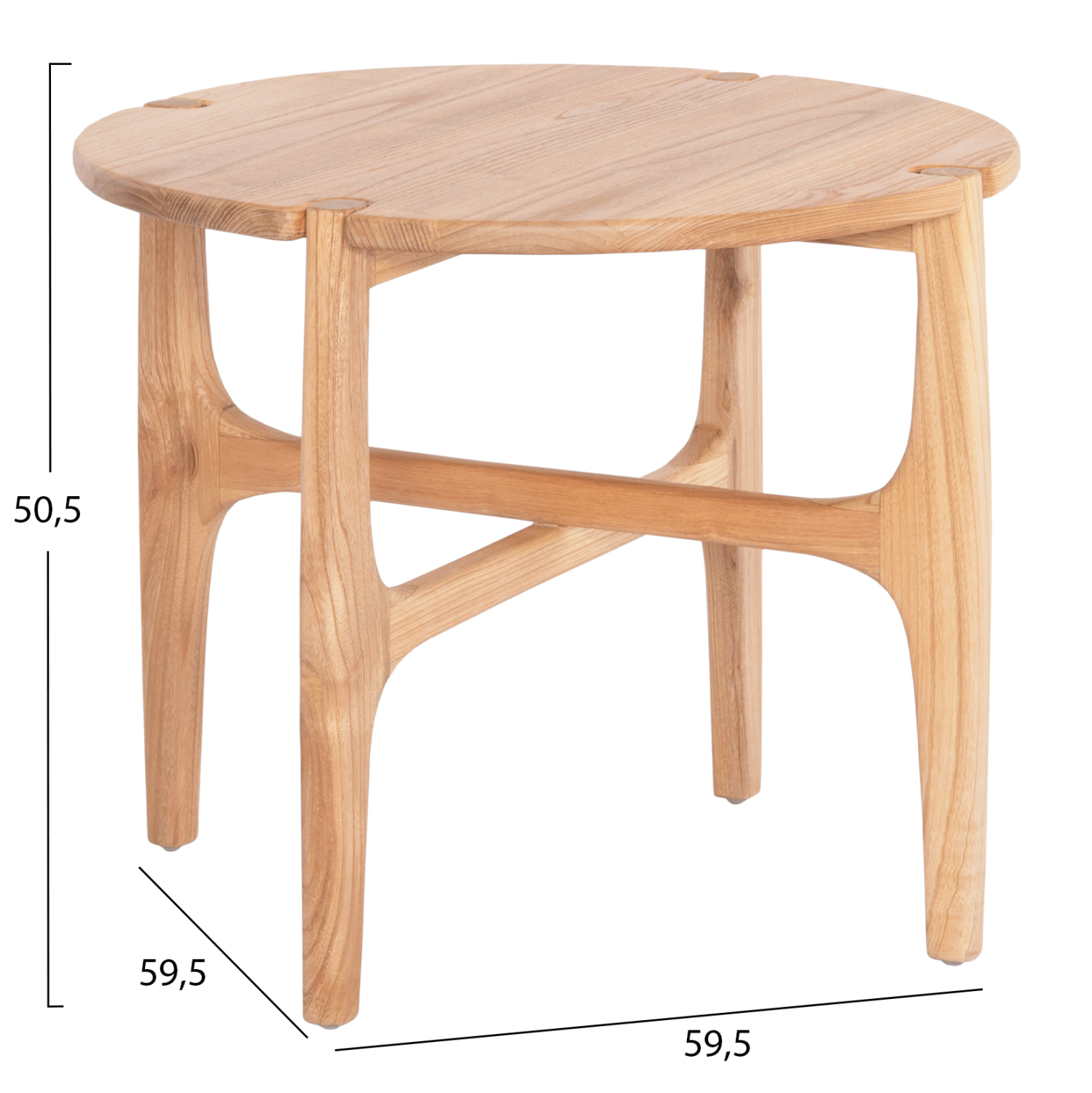 Το βοηθητικό τραπεζάκι FB99932 είναι ένα στρογγυλό ξύλινο βοηθητικό τραπεζάκι σε φυσικό χρώμα ξύλου, με τέσσερα πόδια σε χιαστί διάταξη.