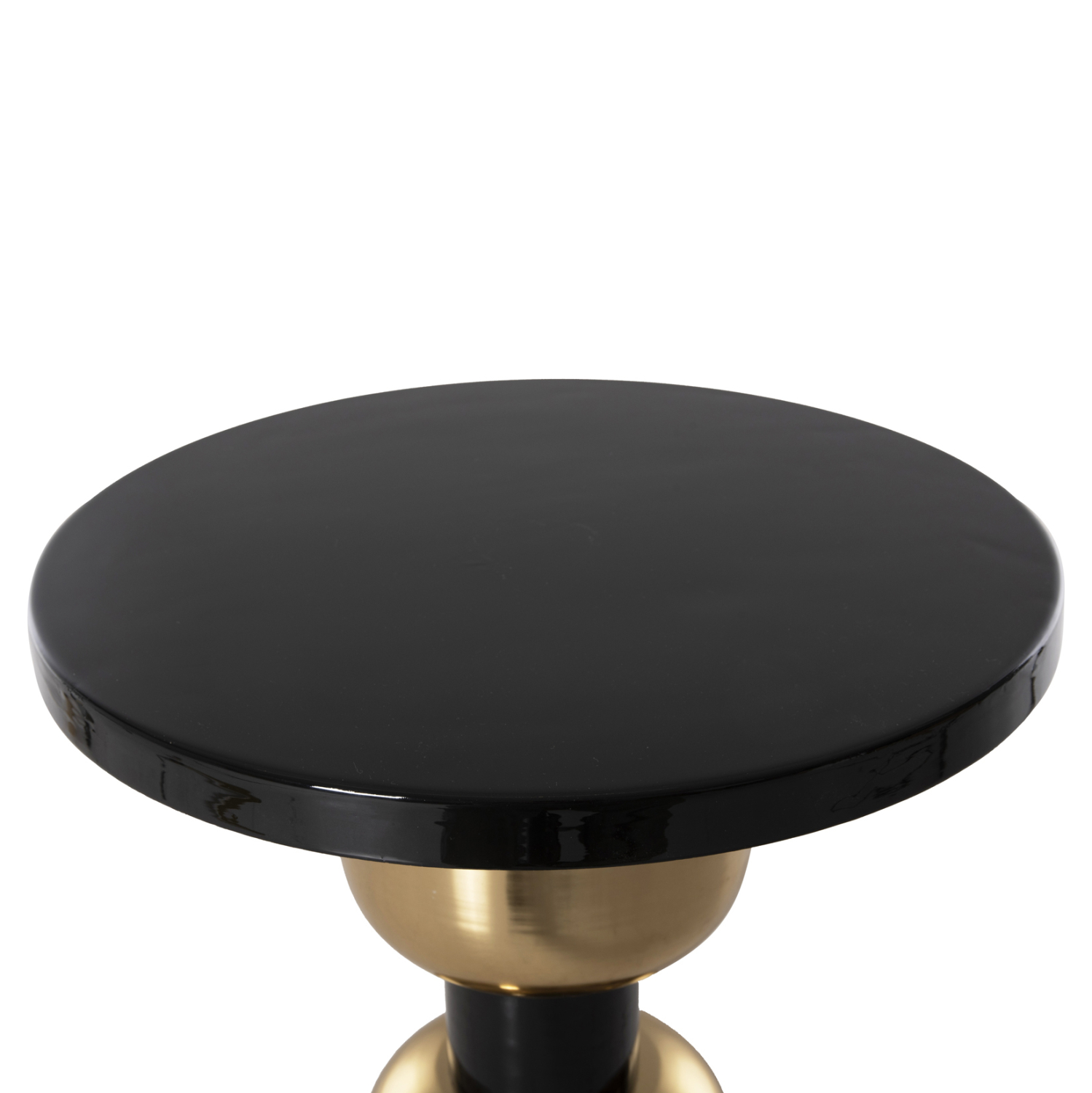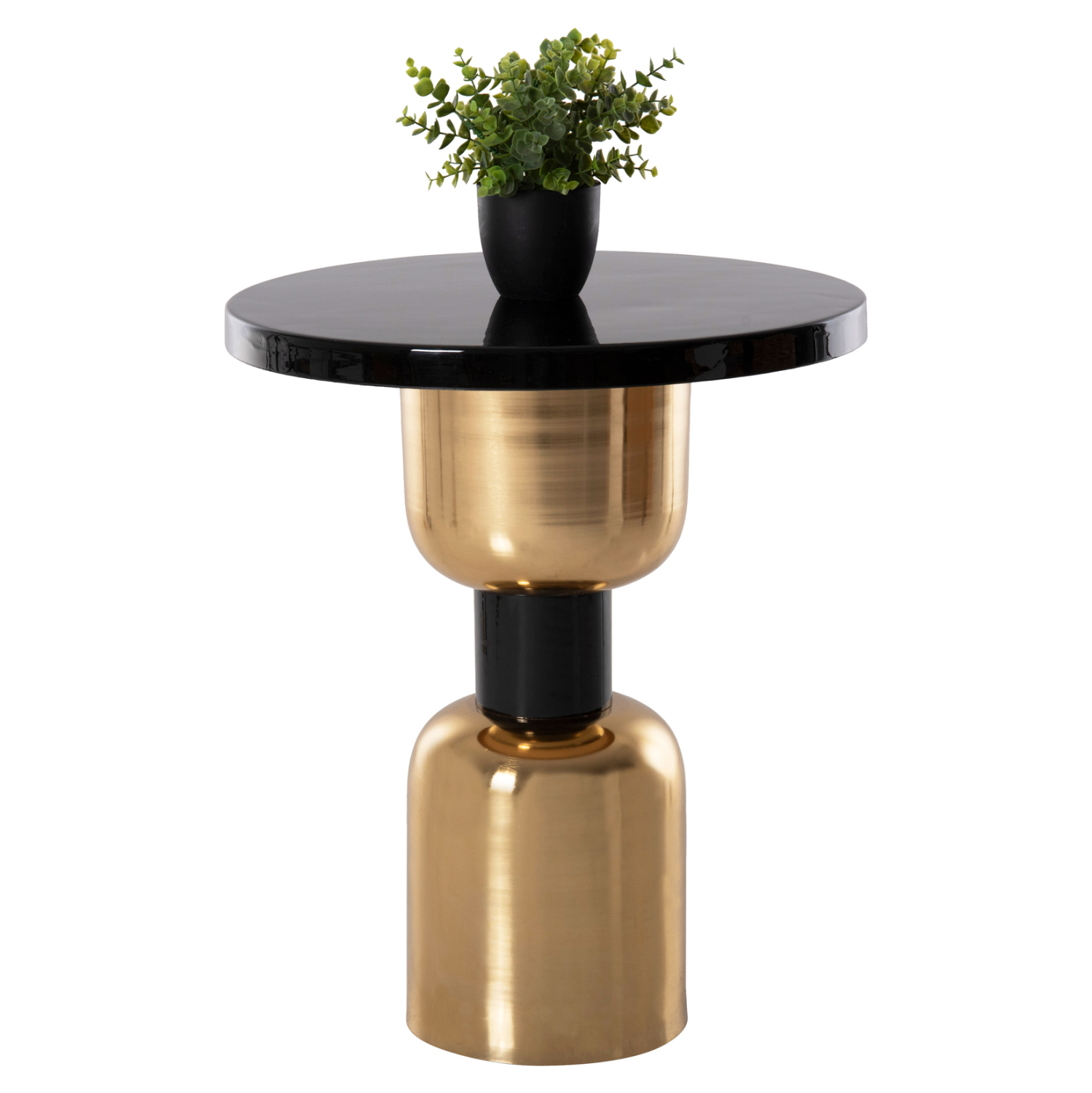 Το βοηθητικό τραπεζάκι FB94236.04 για το σαλόνι είναι μια από τις νέες προσθήκες στην γκάμα μας. Πρόκειται για ένα μεταλλικό τραπεζάκι στρογγυλό με περίτεχνη κυλινδρική βάση και λαιμό. Το τραπέζι είναι σε όμορφη διχρωμία ΜΑΥΡΟΥ-ΧΡΥΣΟΥ που δίνει μια αίσθηση καθαρότητας στον χώρο. Ιδανικό τόσο για το σπίτι, όσο και για επαγγελματικούς χώρους.