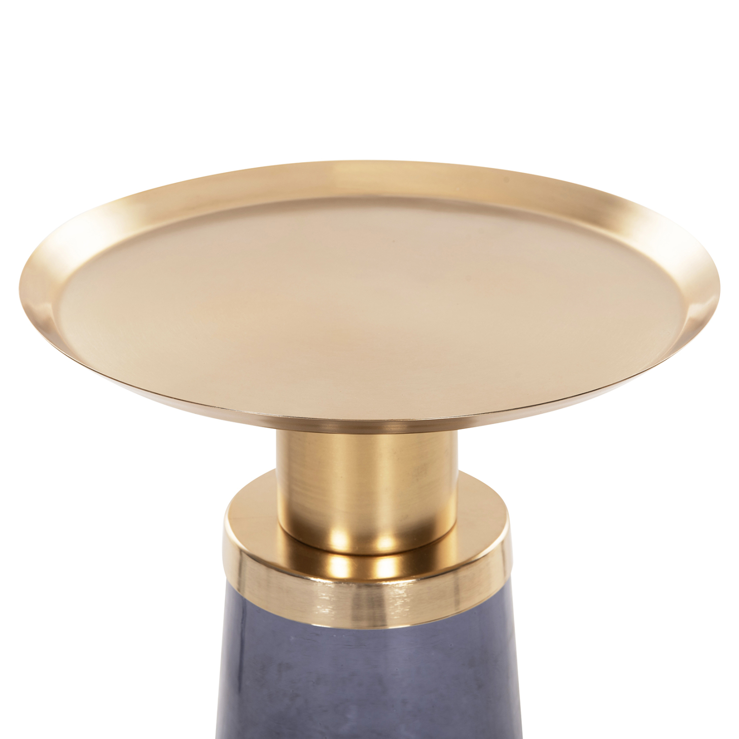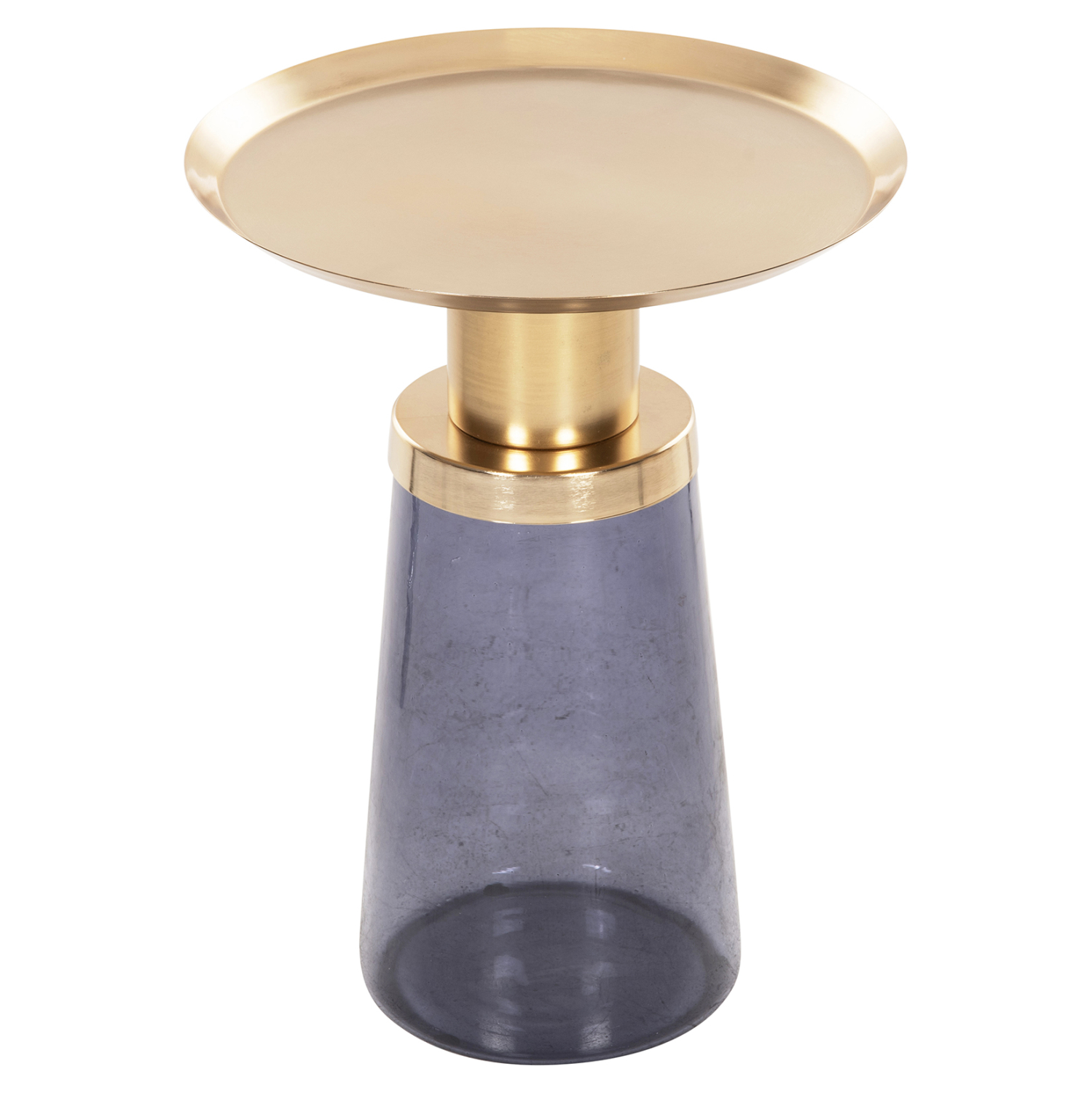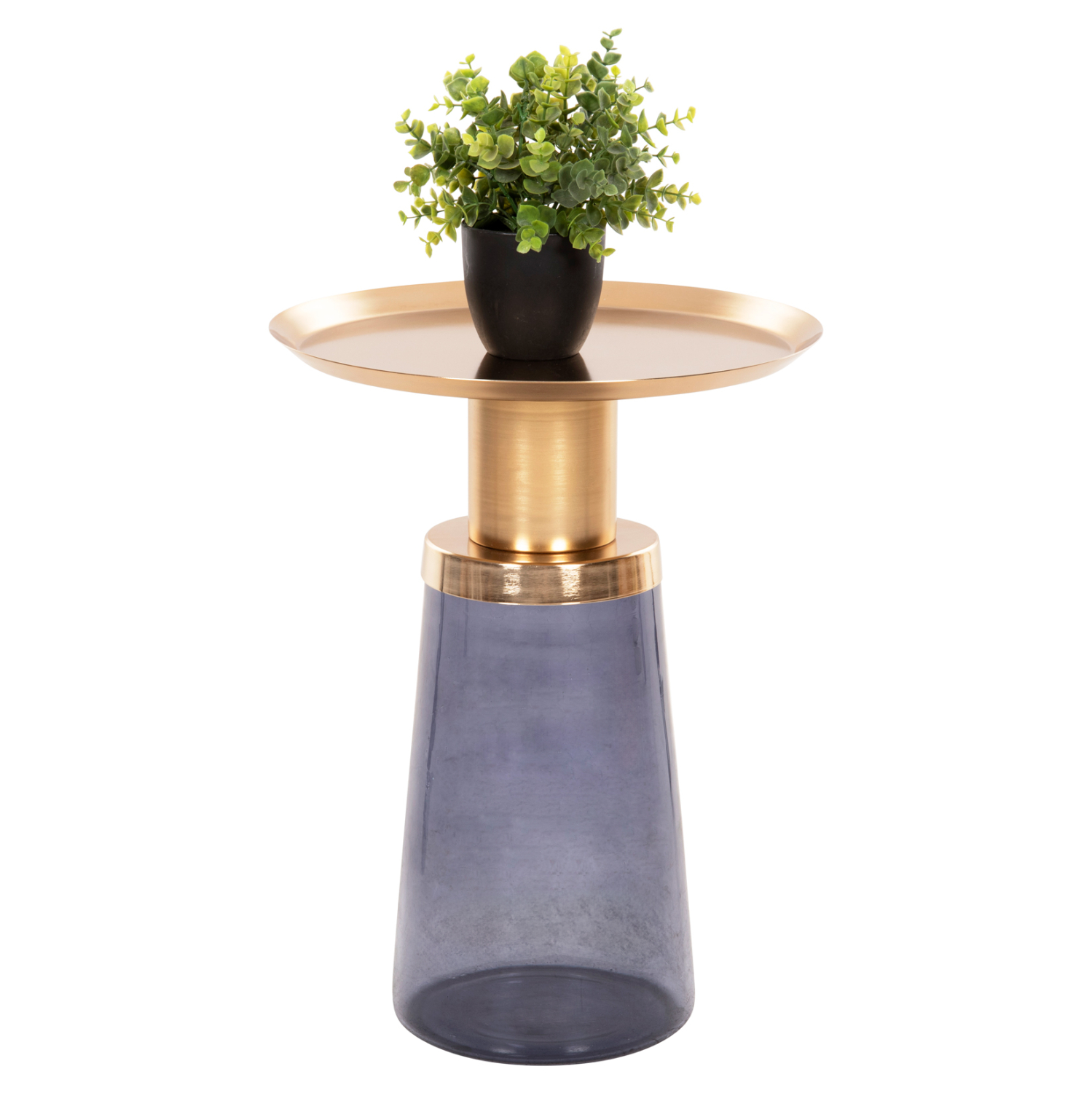 Ανακαλύψτε το βοηθητικό τραπεζάκι FB99725. Πρόκειται για ένα τραπεζάκι με γυάλινη κυλινδρική βάση σε διαφανές ΜΠΛΕ χρώμα και μεταλλικό «λαιμό» και top σε γυαλιστερό ΧΡΥΣΟ χρώμα. Το τραπεζάκι δίνει μια αίσθηση πολυτέλειας και είναι ιδανικό τόσο για το σπίτι, όσο και για επαγγελματικούς χώρους.