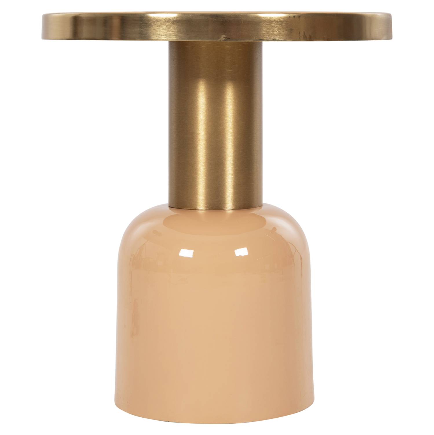 Το βοηθητικό τραπεζάκι FB94249.08 για το σαλόνι είναι μια από τις νέες προσθήκες στην γκάμα μας. Πρόκειται για ένα μεταλλικό τραπεζάκι στρογγυλό με χαμηλή κυλινδρική βάση και ψηλό λαιμό που την συνδέει με την στρογγυλή επιφάνεια. Ο λαιμός και η περίμετρος της επιφάνειας είναι σε ΧΡΥΣΟ χρώμα ενώ η βάση και η επιφάνεια είναι σε χρώμα ΣΟΜΟΝ με ΜΠΕΖ λεπτομέρεια, που δίνουν ένα πολύ ιδιαίτερο αισθητικό αποτέλεσμα. Ιδανικό τόσο για το σπίτι, όσο και για επαγγελματικούς χώρους.