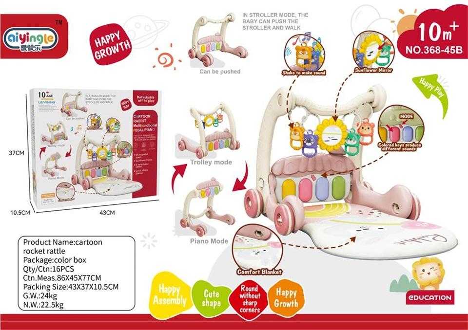 Βρεφικό γυμναστήριο και στράτα 2 σε 1, με κρεμαστά παιχνίδια και πλήκτρα ποδιών, με ήχους και πολλαπλές δυνατότητες. Διαθέτει μαλακό στρωματάκι με σχέδια από απαλό υποαλλεργικό ύφασμα. Το στρώμα αφαιρείται και μετατρέπεται πανεύκολα σε στράτα.