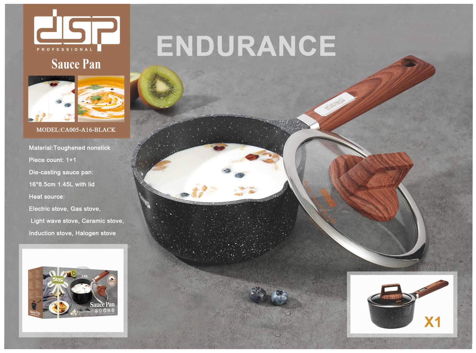 Γαλατιέρα-σαλτσιέρα υψηλής ποιότητας κατασκευής από την DSP, με ισχυρή αντικολλητική επίστρωση γρανίτη και γυάλινο καπάκι.