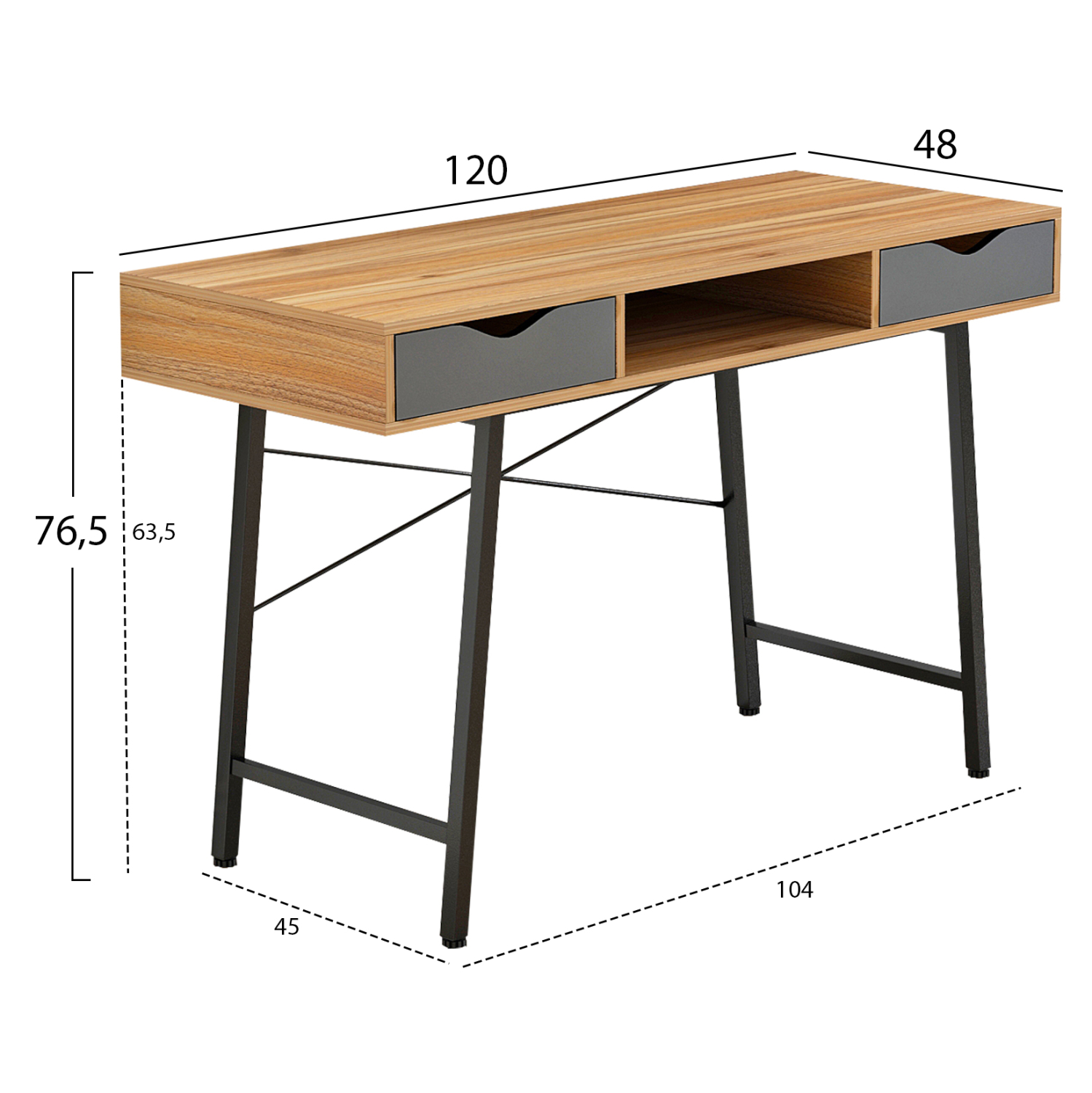 ΓΡΑΦΕΙΟ ΚΑΡΥΔΙ-ΓΚΡΙ ΜΕ ΜΑΥΡΟ ΜΑΤ ΣΚΕΛΕΤΟ FB92128.03 120x48x76,5Υ εκ.