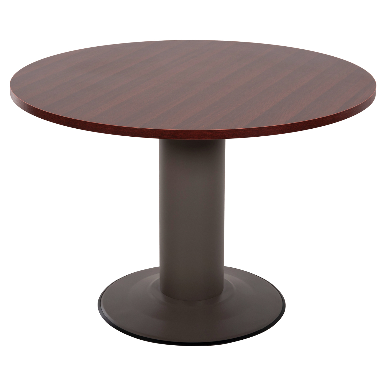 Επαγγελματικό γραφείο συνεδριάσεων με στρόγγυλη επιφάνεια, κατασκευασμένο από ανθεκτική μελαμίνη σε wenge απόχρωση και μεταλλική βάση σε γκρι απόχρωση.
