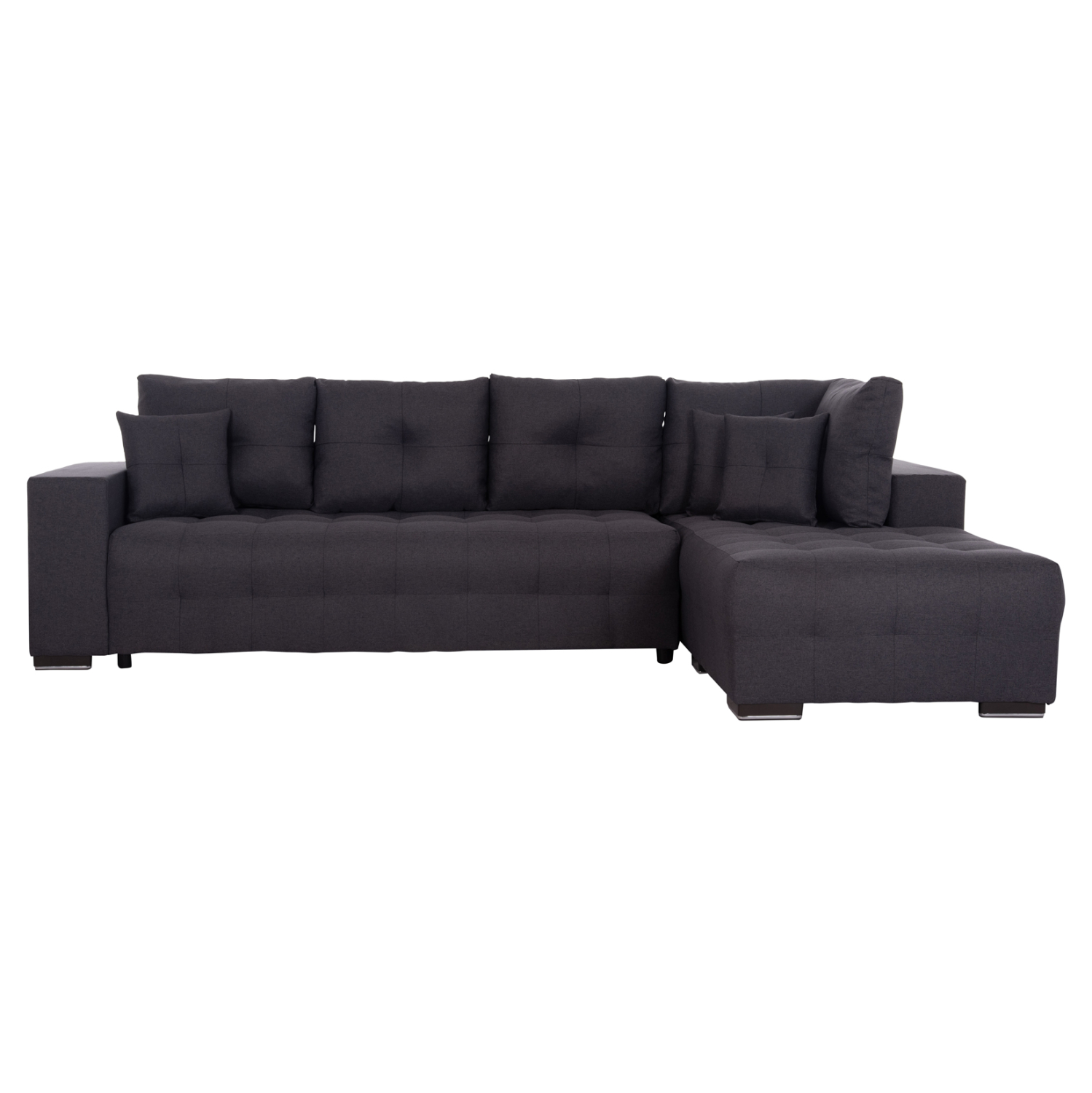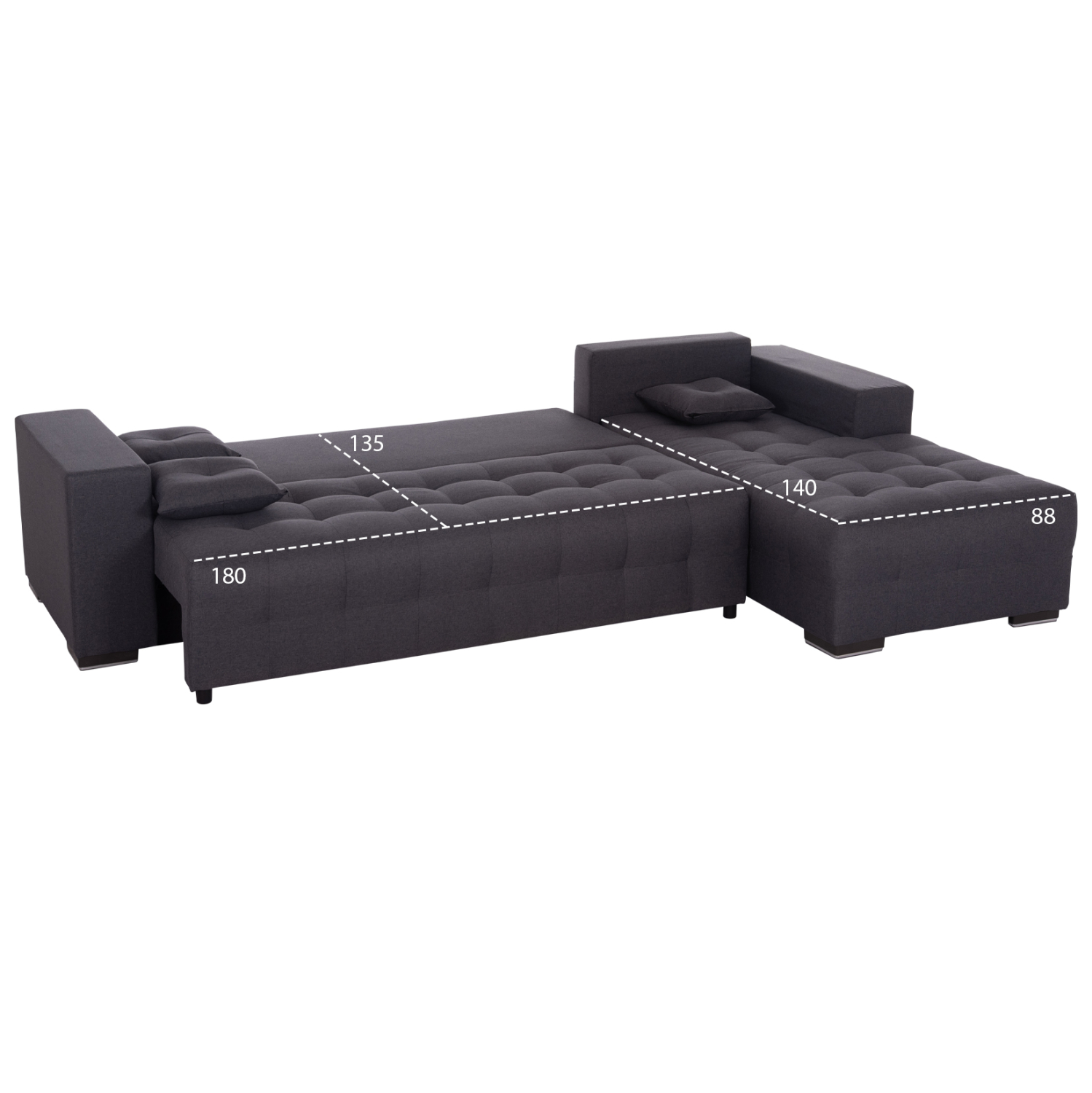 Ο FB93302.01R είναι ένας μεγάλος γωνιακός καναπές-κρεβάτι (ΔΕΞΙΑ ΓΩΝΙΑ). Η επένδυσή του είναι με εξαιρετικής ποιότητας ΓΚΡΙ ύφασμα με καπιτονέ τεχνοτροπία τόσο στα μαξιλάρια όσο και στο κάθισμα, ενώ τα πόδια είναι εξαιρετικά χαμηλά. Διαθέτει 5 μεγάλα μαξιλάρια πλάτης και 3 μικρότερα διακοσμητικά. Το κρεβάτι σχηματίζεται τραβώντας το κάθισμα του κυρίως καναπέ, «ρίχνοντας» ταυτόχρονα μπροστά την κοντή πλάτη. Εκεί ακριβώς δημιουργείται και ένας άκρως ικανοποιητικός αποθηκευτικός χώρος. Τέλος, το μπράτσο στην αριστερή πλευρά είναι φαρδύ και άνετο, ολοκληρώνοντας με τον καλύτερο τρόπο την απαράμιλλη πρακτικότητα αυτού του υπέροχου καναπέ.