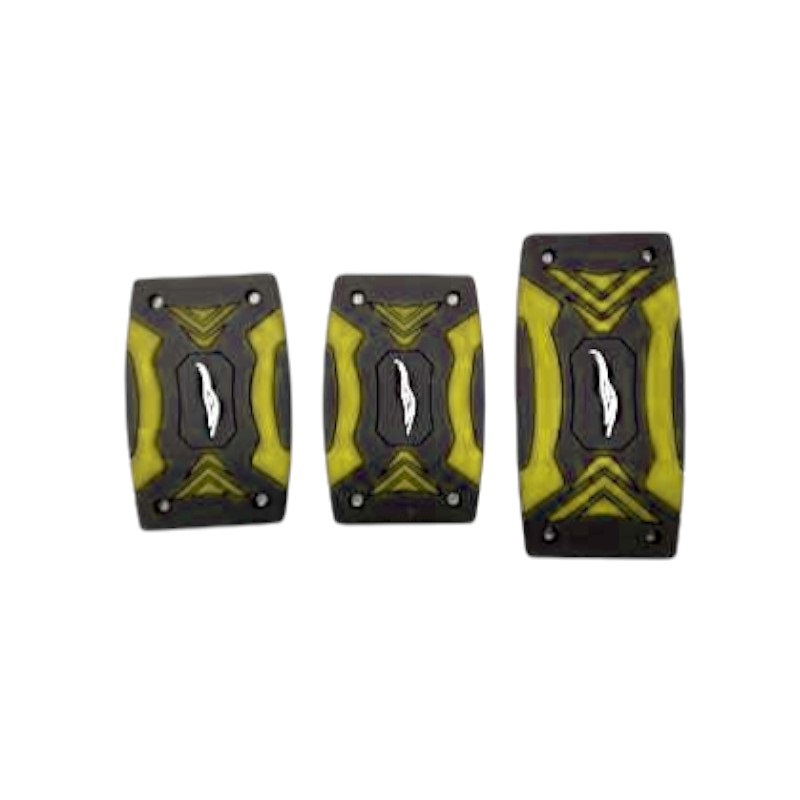 Διακοσμητικά καλύμματα πεντάλ αυτοκινήτου με σχέδιο. Θα προσδώσουν στυλ και θα αναβαθμίσουν την εμφάνιση του αυτοκινήτου σας ενώ θα διευκολύνουν την οδήγησή σας χάρη στον εργονομικό σχεδιασμό με αντιολισθητική επιφάνεια και λεπτομέρειες από ανθεκτικό συμπαγές καουτσούκ. Εύκολη και σταθερή τοποθέτηση με κλιπ. Σετ 3 τεμαχίων ειδικά σχεδιασμένα για γκάζι/φρένο/συμπλέκτη.