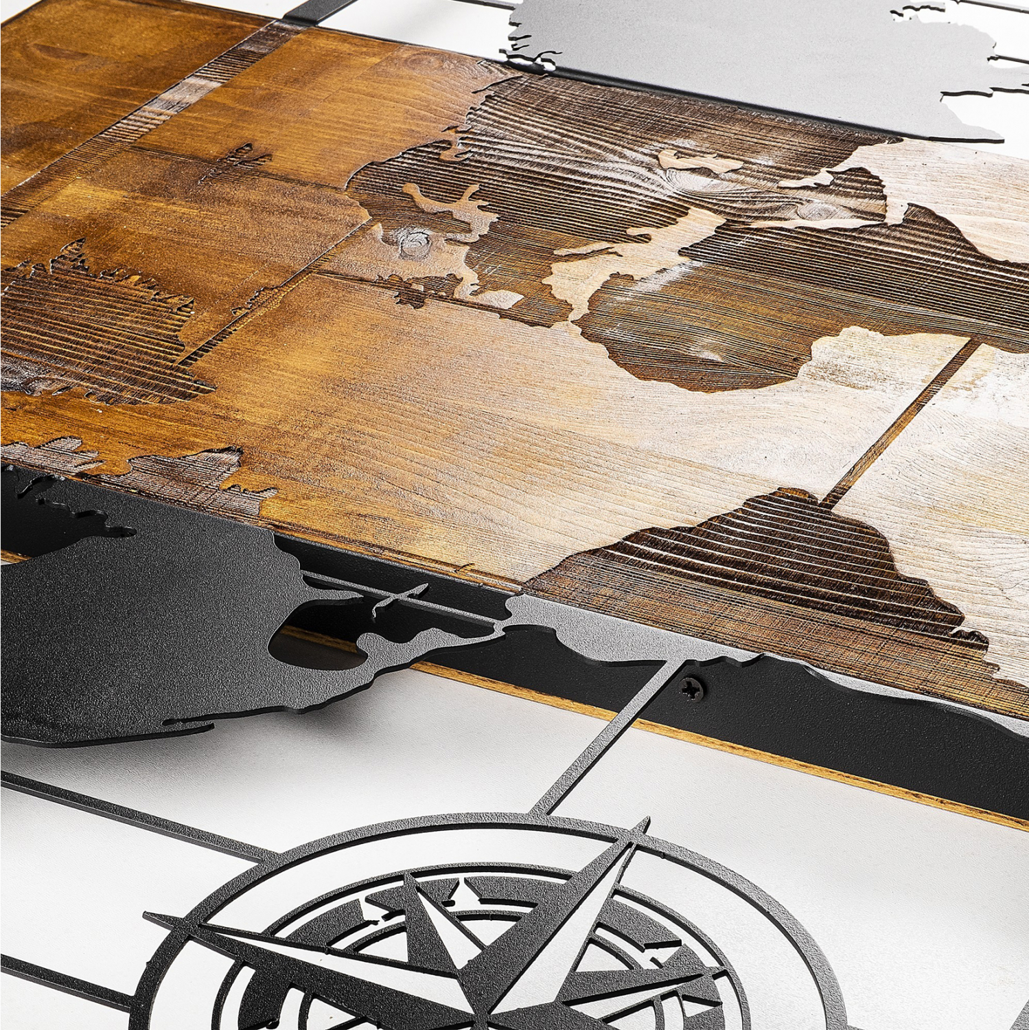 ΔΙΑΚΟΣΜΗΤΙΚΟ ΤΟΙΧΟΥ ΞΥΛΙΝΟ ΜΕ ΜΕΤΑΛΛΙΚO ΠΑΓΚΟΣΜΙΟ ΧΑΡΤΗ 85Χ58 FB97223 Natural wood Μαύρο Διακοσμητικά τοίχου
