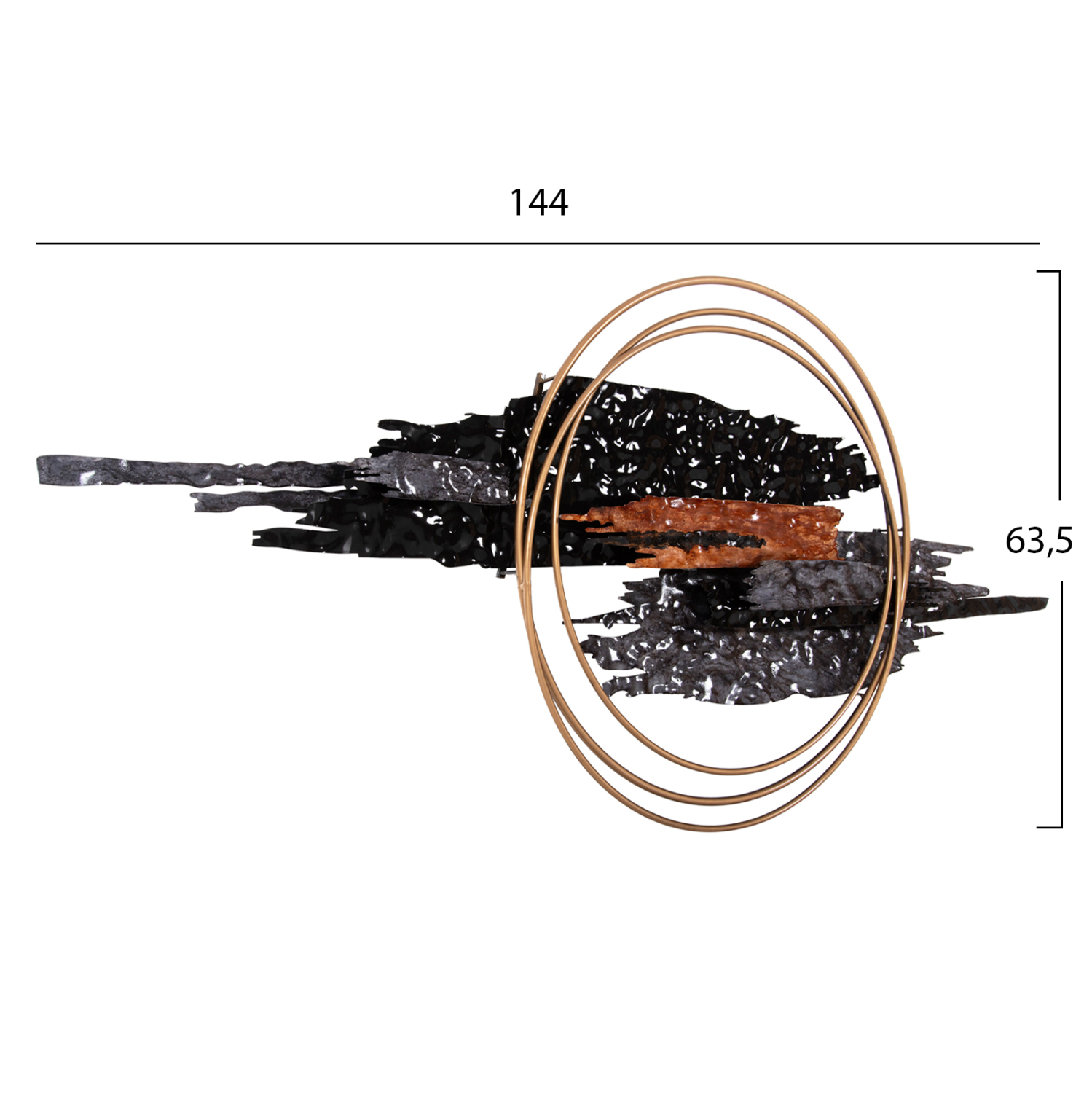 Εάν θέλετε να διακοσμήσετε τον τοίχο σας με έναν εναλλακτικό τρόπο σε σχέση με έναν αληθινό πίνακα, τότε μην διστάσετε να τοποθετήσετε αυτό το μεταλλικό διακοσμητικό τοίχου. Αποτελείται από αφηρημένα μεταλλικά κομμάτια σε ΜΑΥΡΟ και ΑΝΘΡΑΚΙ χρώμα και ΧΡΥΣΟΥΣ δακτυλίους. Μπορείτε όμως να φανταστείτε την χρησιμότητά τέτοιων διακοσμητικών;