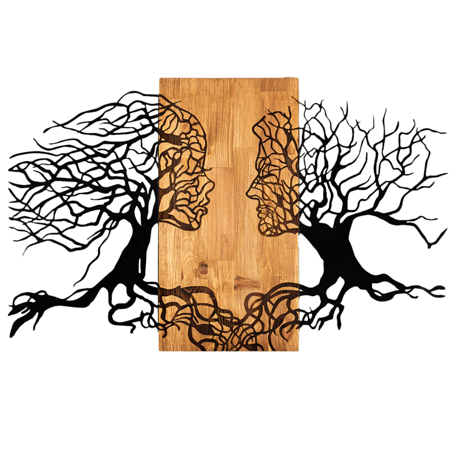 Θέλετε να τραβήξετε τα βλέμματα με κάτι όμορφο στον χώρο σας; Μην διστάσετε να διακοσμήσετε τον τοίχο σας με ένα κομμάτι wall art. Το FB94803 έχει την εικόνα δύο δέντρων με την ψευδαίσθηση αντικριστών προσώπων, και είναι κατασκευασμένο από ΜΑΥΡΑ φύλλα μετάλλου επάνω σε μια ξύλινη ορθογώνια βάση σε ΦΥΣΙΚΟ, ενώ το εντυπωσιακό είναι ότι οι φιγούρες των προσώπων είναι σκαλιστές στο ξύλινο μέρος του διακοσμητικού! Μπορείτε όμως να φανταστείτε την χρησιμότητά τέτοιων διακοσμητικών;