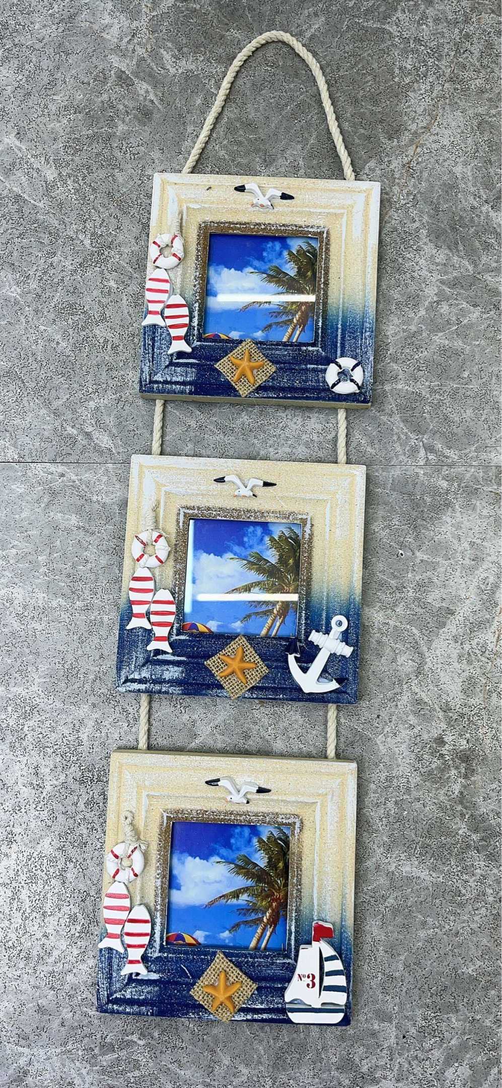 Χειροποίητο, διακοσμητικό Souvenir με 3 κορνίζες, από υψηλής ποιότητας πολυεστερικό, μη τοξικό υλικό και ανεξίτηλα χρώματα, με υπέροχα, ρεαλιστικά ανάγλυφα σχέδια που αντιπροσωπεύουν το καλοκαίρι και τη θάλασσα. Ιδανικό ως διακοσμητικό, αναμνηστικό ταξιδιού ή δώρο.