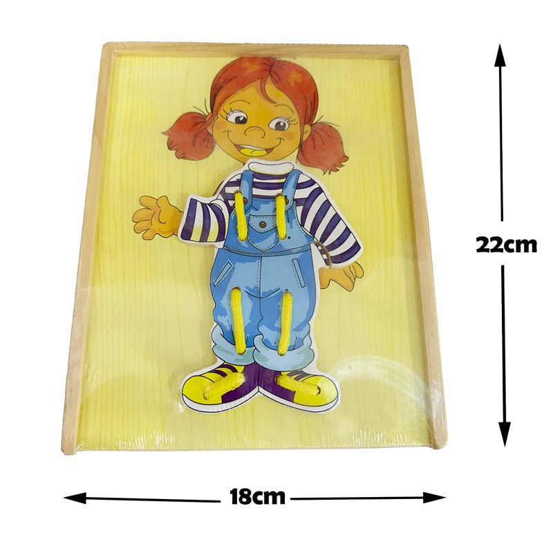Εκπαιδευτικό ξύλινο παζλ μαθαίνω να δένω τα Κορδόνια μου με υπέροχα έντονα χρώματα.