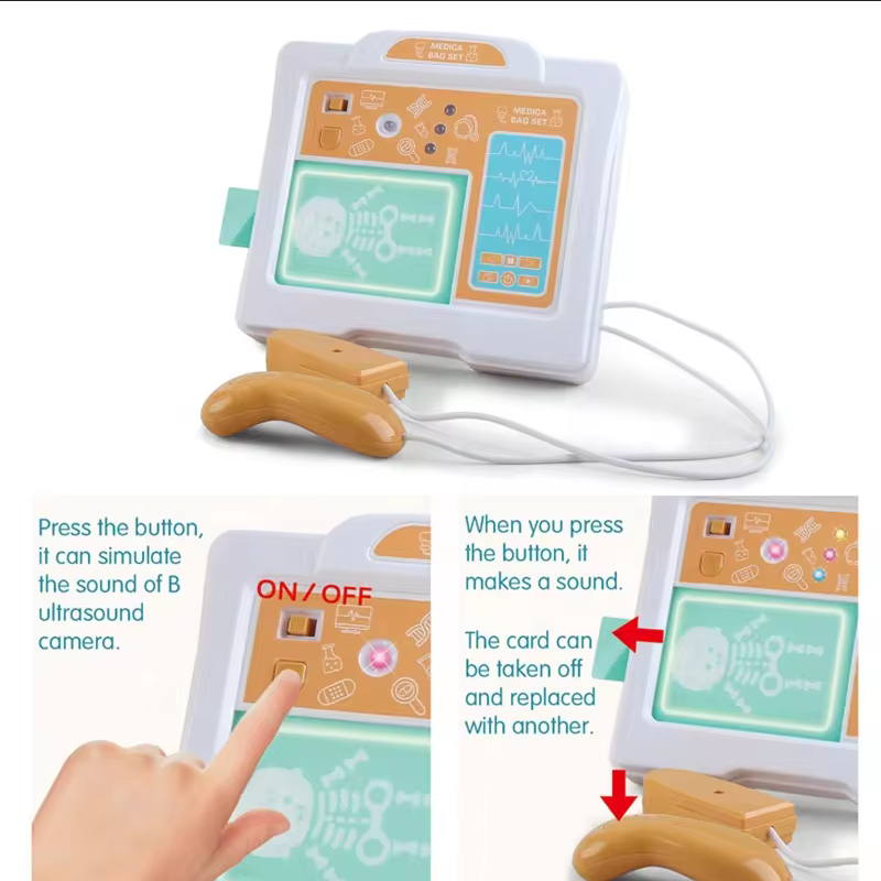 Εκπαιδευτικό παιχνίδι ανατομίας με ηλεκτρονική συσκευή υπερήχου και αξεσουάρ ιατρικής, ιδανικό για την εκμάθηση των οργάνων και των λειτουργιών του ανθρωπίνου σώματος μέσω του παιχνιδιού.