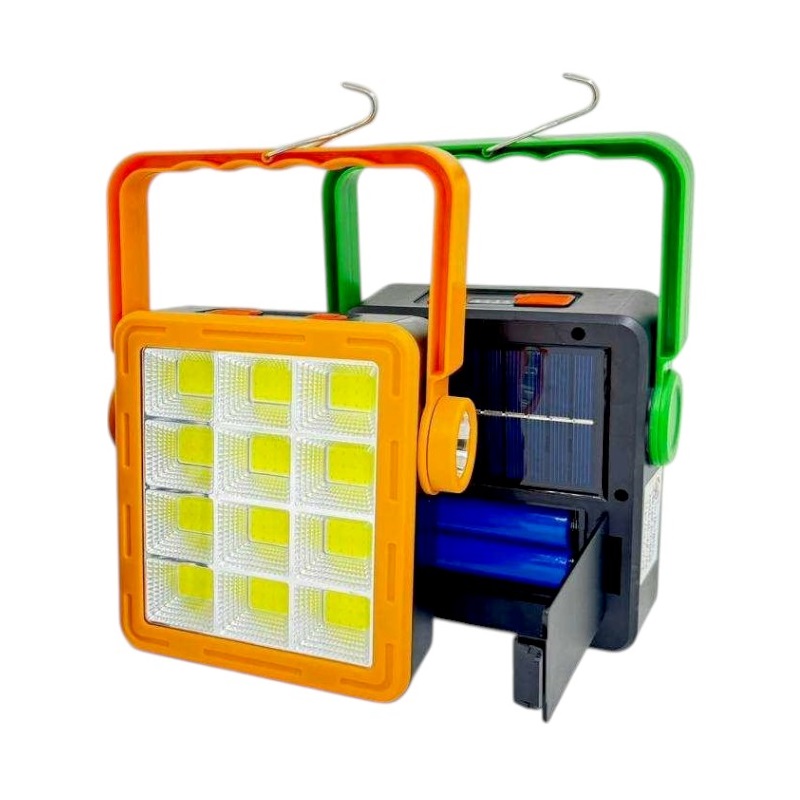 Χαρακτηριστικά: Προβολέας και πλαϊνός φακός 3 λειτουργίες, Λυχνία ένδειξης φόρτισης, 2 x επαναφορτιζόμενες μπαταρίες 18650 (περιλαμβάνονται) Γάντζος – κρεμάστρα Πτυσσόμενη χειρολαβή Χρόνος φόρτισης USB: 2 ώρες Χρόνος ηλιακής φόρτισης: 8 ώρες σε ηλιοφάνεια, Αυτονομία: 4-6 ώρες αναλόγως την ένταση, Θερμοκρασία-χρώμα φωτισμού: Ψυχρό λευκό 6500Κ. Ανθεκτικό περίβλημα ABS Διαστάσεις: 16 x 15 x 4cm