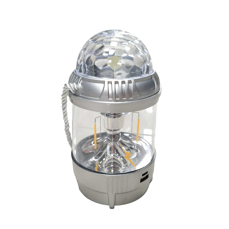 Επαναφορτιζόμενη, πολυλειτουργική λάμπα-φαναράκι LED, ιδανική για κάμπινγκ και φωτισμό σε υπαίθριους χώρους. Διαθέτει ενσωματωμένο φωτορυθμικό το οποίο μπορεί να δημιουργήσει μια εντυπωσιακή ατμόσφαιρα στον χώρο σας. Ισχύς: 3W, Επαναφορτιζόμενη μπαταρία λιθίου 1500mah, Λουρί μεταφοράς που μπορεί να χρησιμοποιηθεί ως κρεμάστρα, Θύρα USB: μπορεί να χρησιμοποιηθεί ως Powerbank, καλώδιο φόρτισης USB, Χρόνος φόρτισης: 3 ώρες Αυτονομία: έως 5 ώρες Μπορεί να λειτουργήσει και με 3 μπαταρίες ΑΑ (δεν περιλαμβάνονται) Υλικό: πλαστικό ABS Διαστάσεις: 17.9 x 9.6cm.