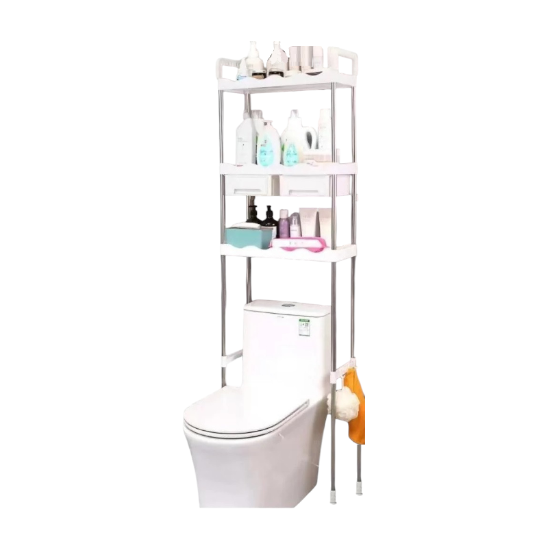 Επιδαπέδια ραφιέρα μπάνιου με μεταλλικό σκελετό, συναρμολογούμενη, με 3 πρακτικά ράφια, πλαϊνές κρεμάστρες και 2 συρτάρια, ιδανική για οργάνωση και εξοικονόμηση χώρου καθώς τοποθετείται επάνω από τη λεκάνη τουαλέτας. Διαστάσεις: 50.5 × 25 x 170 cm. Απόσταση μεταξύ ραφιών: 30cm