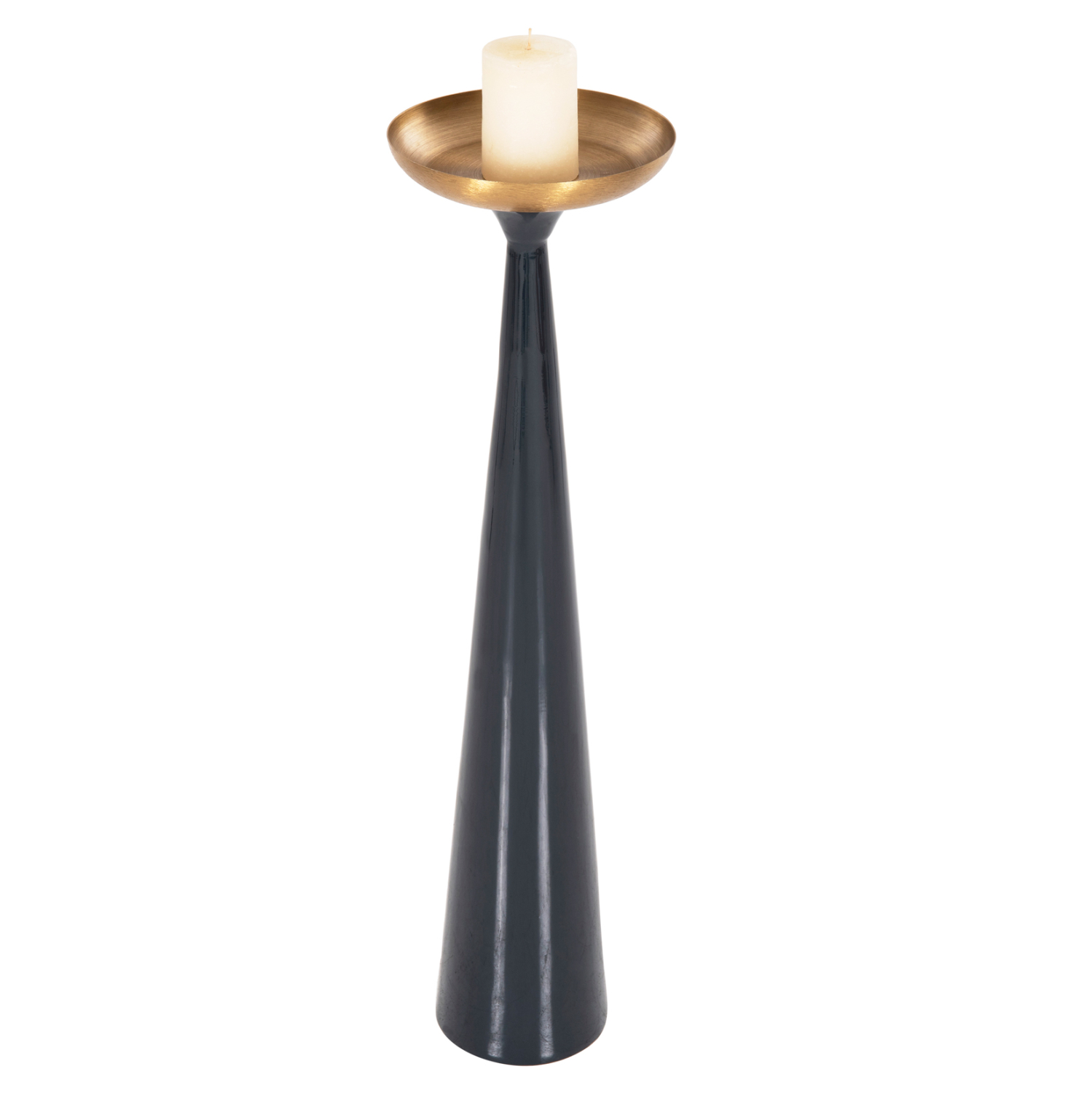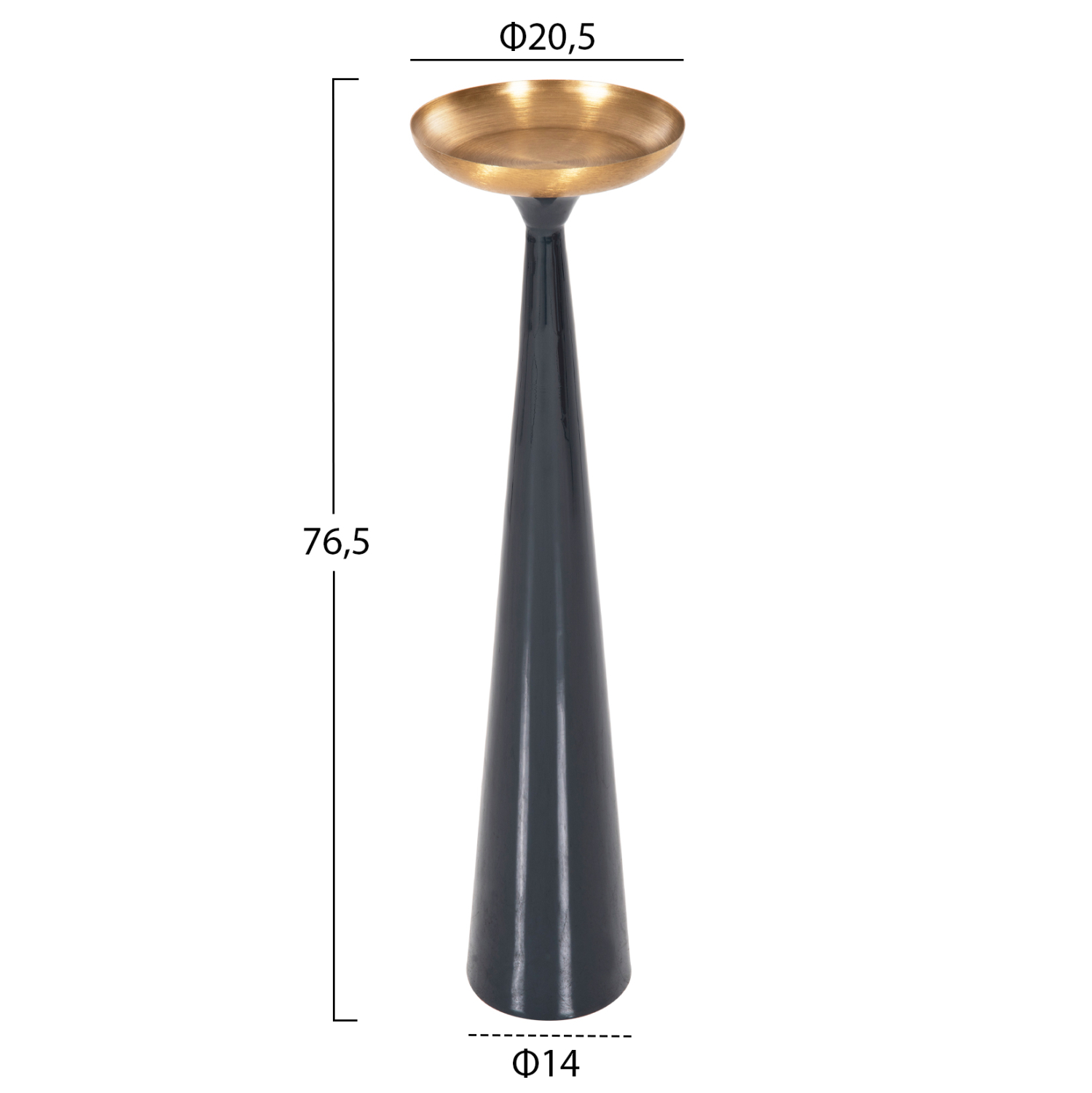 Το FB94382 είναι ένα διακοσμητικό κηροπήγιο δαπέδου (κυρίως) και αποτελεί ακόμα μια καινούργια προσθήκη στην γκάμα μας. Είναι εξολοκλήρου μεταλλικό και έχει κωνική κολώνα σε ΜΠΛΕ ΑΝΘΡΑΚΙ χρώμα και «πιατάκι» σε ΧΡΥΣΟ χρώμα. Βέβαια, στο «πιατάκι» εκτός από κεριά μπορείτε να τοποθετήσετε και οτιδήποτε άλλο θέλετε ως διακοσμητικό. Ιδανικό τόσο για το σπίτι, όσο και για επαγγελματικούς χώρους, θα μαγνητίσει το ενδιαφέρον των επισκεπτών.