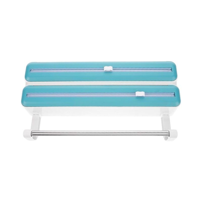 Επιτοίχια βάση ρολού κουζίνας με 2 ενσωματωμένες θήκες για μεμβράνη & αλουμινόχαρτο, με κόφτη για άμεση και εύκολη χρήση. Ένα πρακτικό εργαλείο 3 σε 1 που θα διευκολύνει την καθημερινότητα στην κουζίνα σας, εξοικονομώντας χώρο και χρόνο!