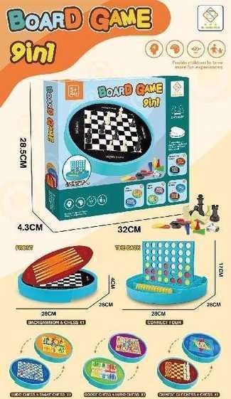 Σετ επιτραπέζιο παιχνίδι 9 σε 1 με Σκάκι-Τάβλι-Φιδάκι-Γκρινιάρη-Τέσσερα κα., με όλα τα απαραίτητα σύνεργα και αξεσουάρ για ατελείωτες ώρες παιχνιδιού με την όλη την οικογένεια ή τους φίλους σας! Για έως 4 παίκτες.