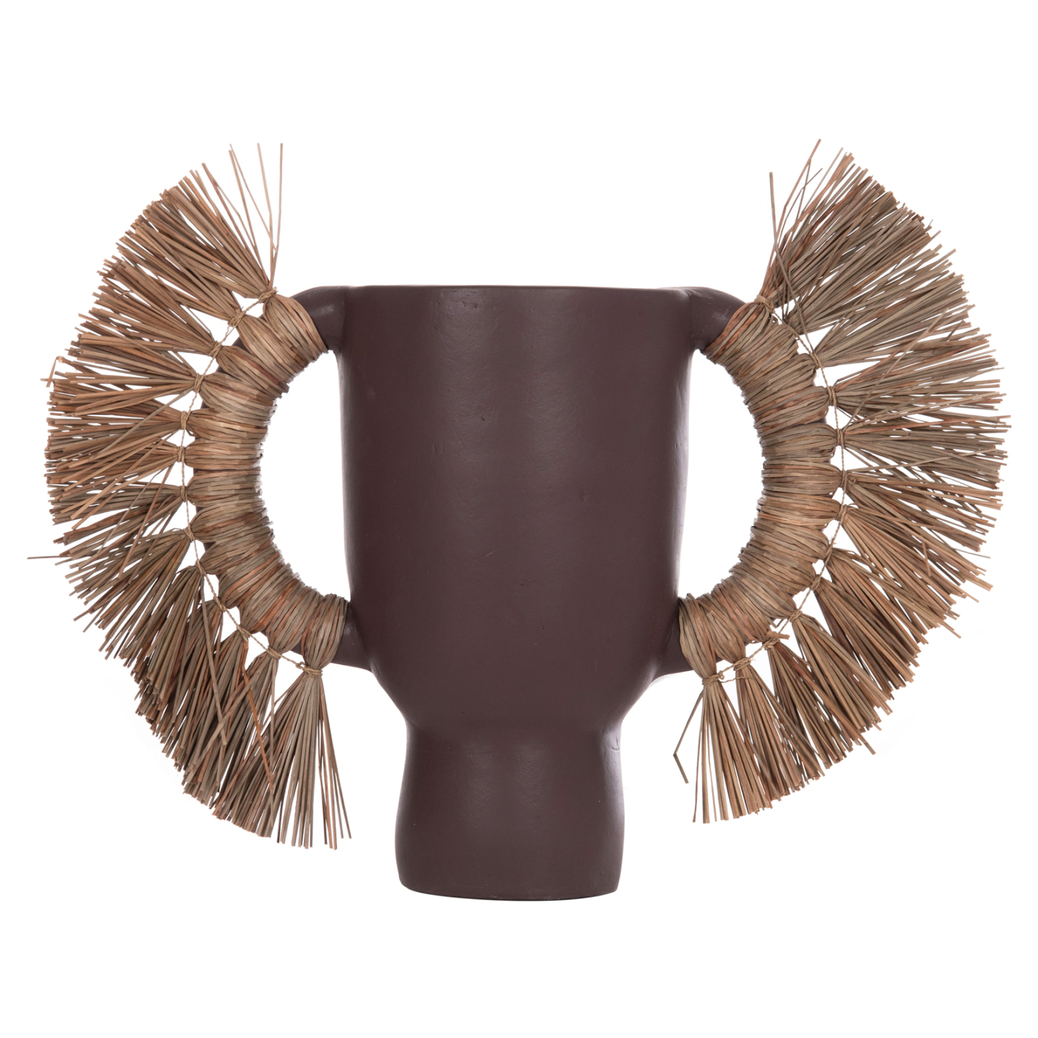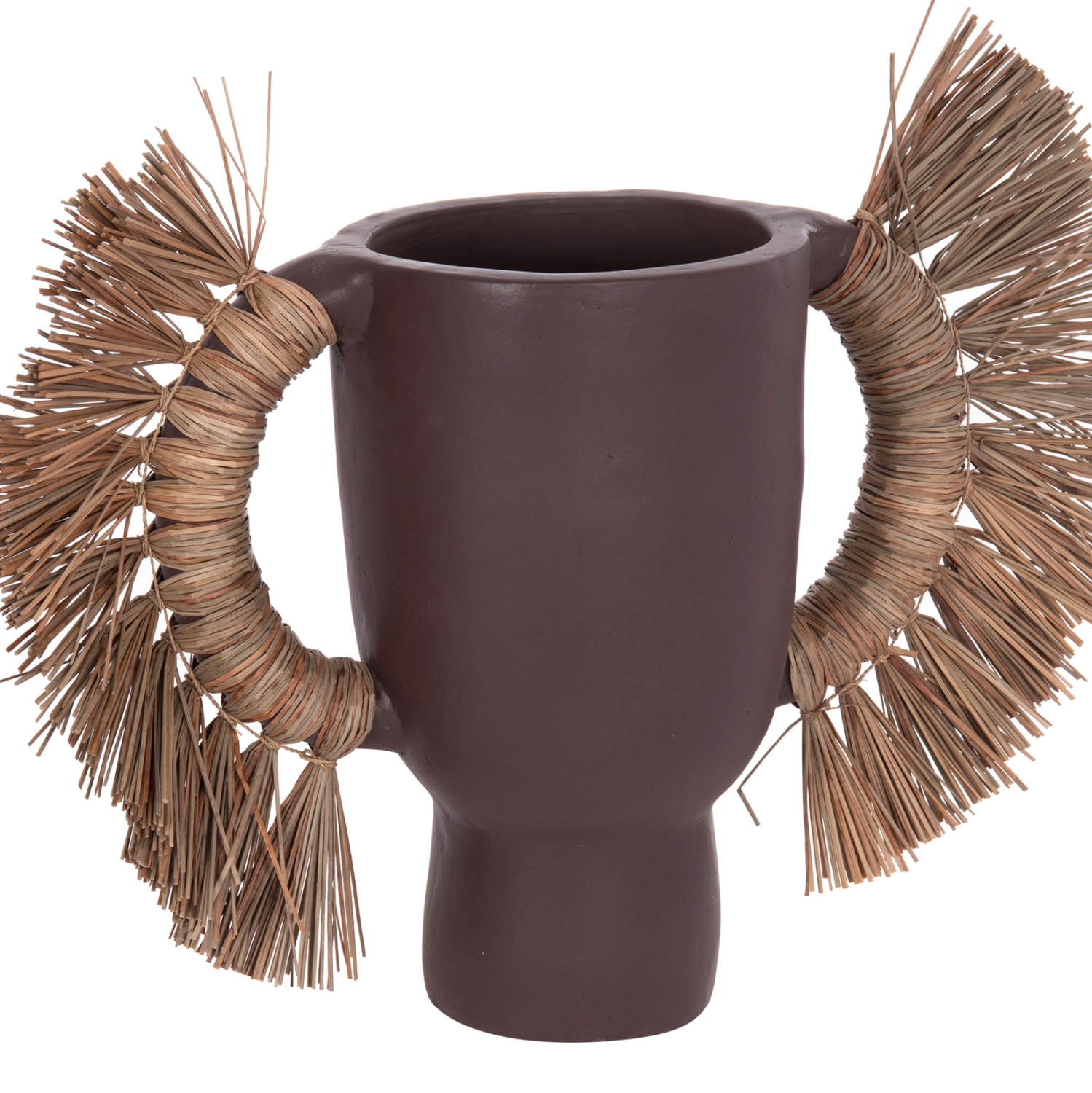 Το επιτραπέζιο χειροποίητο διακοσμητικό βάζο FB94668.07L είναι ένα πολύ ιδιαίτερο διακοσμητικό στοιχείο για κάθε χώρο. Είναι κατασκευασμένο εξολοκλήρου από τερακότα σε ΣΟΚΟΛΑΤΙ χρώμα, ενώ διαθέτει και δύο χερούλια επενδυμένα με αποξηραμένο grass, και ένα φαρδύ στόμιο.