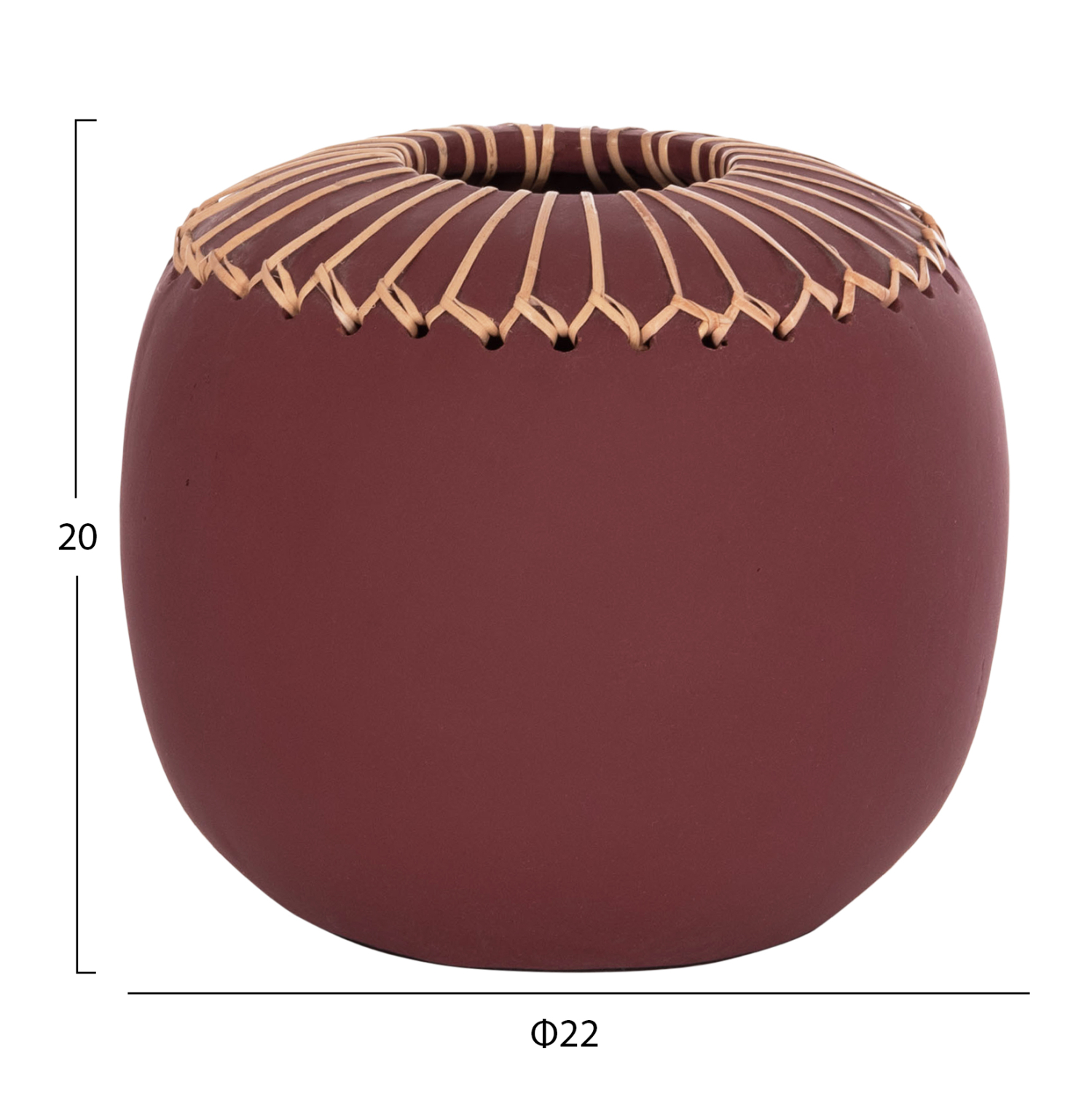 ΕΠΙΤΡΑΠΕΖΙΟ ΔΙΑΚΟΣΜΗΤΙΚΟ ΒΑΖΟ FB94675.06L TΕΡΑΚΟΤΑ ΣΕ ΒΥΣΣΙΝΙ–Φ22×20Υεκ. Natural Rattan Terracotta Βυσσινί
