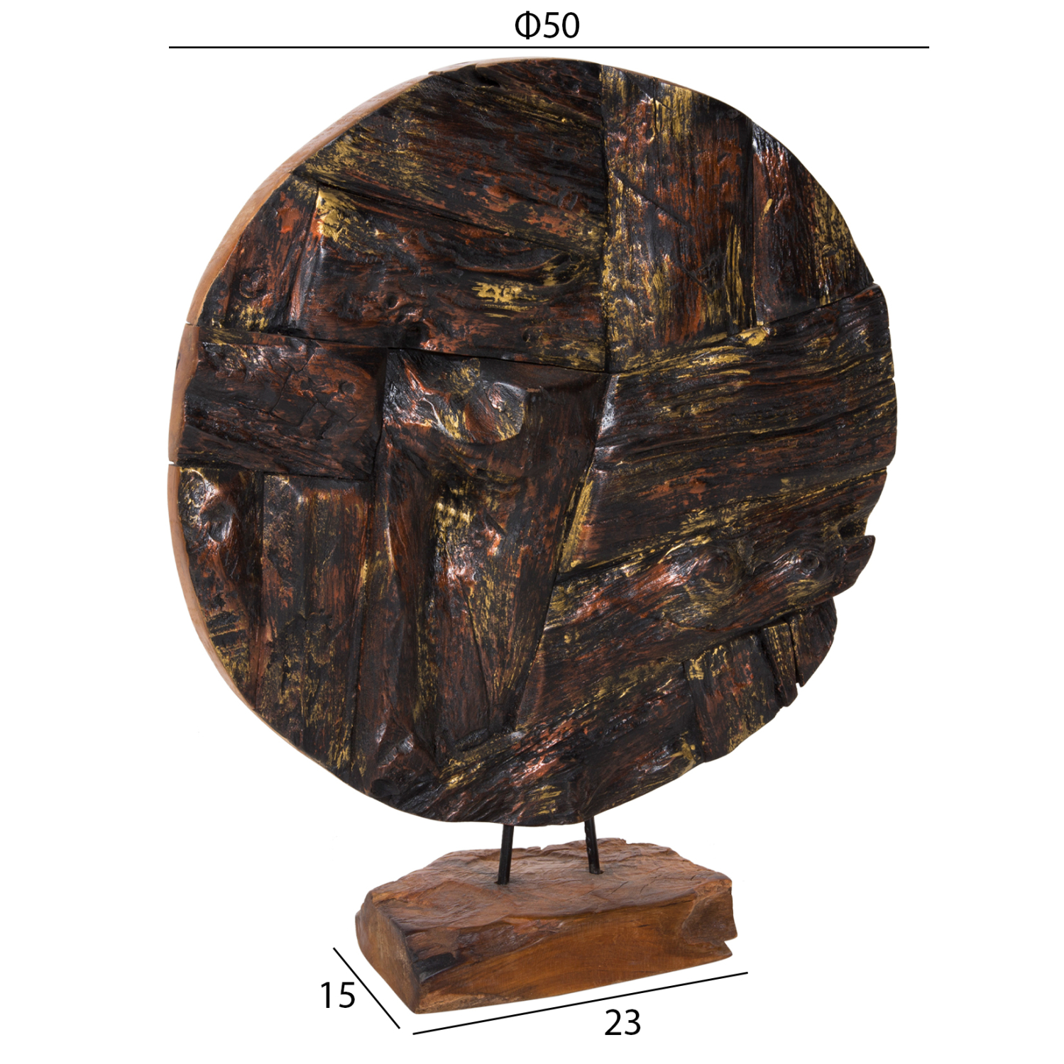 Το επιτραπέζιο διακοσμητικό FB97718 θα δώσει μια άλλη «οπτική» στον χώρο σας. Το design του είναι μοναδικό κι ενδιαφέρον ενώ μπορεί να ταιριάξει με πολλά διακοσμητικά μοτίβα. Τα ξύλα που συνθέτουν τον κύκλο είναι στο φυσικό τους χρώμα και οι διαστάσεις όλης της κατασκευής καθιστούν αυτό το κομμάτι επιβλητικό οπουδήποτε κι αν τοποθετηθεί.