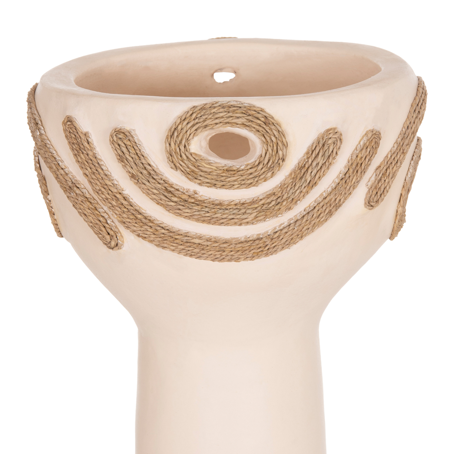 Το FB94679.02 είναι ένα εντυπωσιακό διακοσμητικό βάζο σε σχήμα ψηλού κυπέλλου που προσθέτει χαρακτήρα και ένταση σε κάθε χώρο. Η τερακότα σε χρώμα ΚΡΕΜ δημιουργεί μια απαλή και φωτεινή, γήινη παρουσία, ενώ η διακόσμηση με σχοινί agel πλευρικά προσφέρει φυσική υφή και αυθεντικό, χειροποίητο ύφος. Ιδανικό για κονσόλες, τραπέζια ή επαγγελματικούς χώρους που αναζητούν ιδιαίτερες λεπτομέρειες με premium αισθητική.