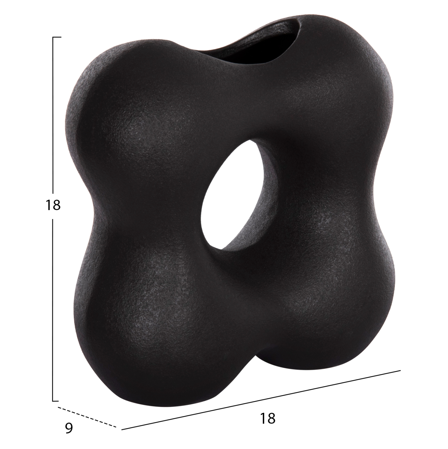 Το FB94594.02 ανήκει στην καινούργια μας σειρά επιτραπέζιων διακοσμητικών. Πρόκειται για ένα διακοσμητικό βάζο με όμορφο σχέδιο σε ΜΑΥΡΟ ΜΑΤ χρώμα, κατασκευασμένο από κεραμικό υλικό που αποτελεί διαχρονική τάση στην εσωτερική διακόσμηση.