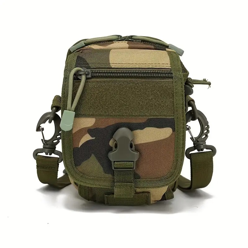 Τσαντάκι ώμου και ζώνης με πολλαπλές θήκες, ιδανικό για πεζοπορία, εξωτερικές δραστηριότητες και χόμπυ. Κατασκευασμένο από εξαιρετικά ανθεκτικό Nylon 800D. Διαθέτει θήκες για όλα σας τα αντικείμενα, που κλείνουν με φερμουάρ και κλιπς. Ρυθμιζόμενο, αφαιρούμενο λουρί ώμου. Ιμάντες τοποθέτησης στη ζώνη. Διαστάσεις: 18 x 12 x 7cm.