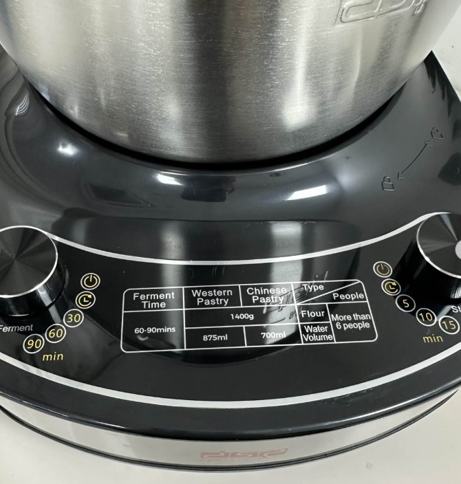 Ρυθμιζόμενος χρόνος ζυμώματος (30, 60, 90 λεπτά) και και ανάμειξης (5, 10, 15 λεπτά)