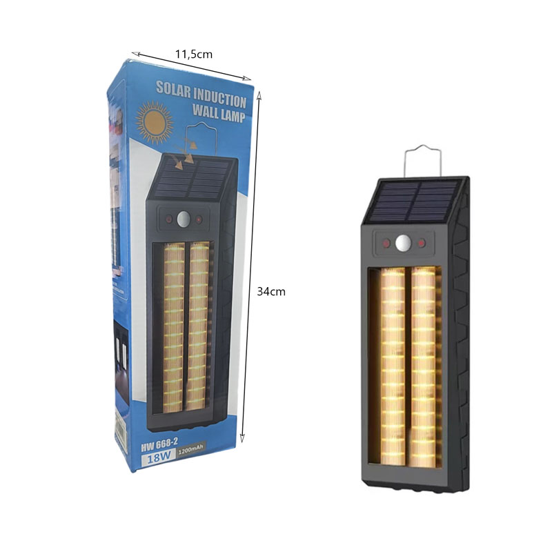 Φωτίστε τον εξωτερικό σας χώρο με απόλυτη αυτονομία και ασφάλεια με το ηλιακό φωτιστικό τοίχου HW 668-2. Διαθέτει αισθητήρα κίνησης και 3 λειτουργίες φωτισμού (λευκό, θερμό, εναλλασσόμενο θερμό) για να προσαρμόζεται στις ανάγκες σας. Ιδανικό για αυλές, μπαλκόνια, γκαράζ και εισόδους.