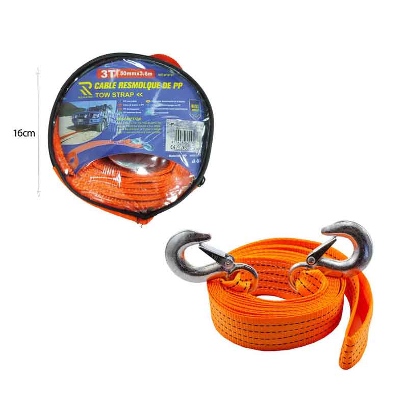 Ανθεκτικός ιμάντας ρυμούλκησης με αντοχή έως 3 τόνους, ιδανικός για την ασφάλεια και την υποστήριξη σε περιπτώσεις έκτακτης ανάγκης στον δρόμο. Διαθέτει μεταλλικούς γάντζους βαρέως τύπου με ασφάλεια για σταθερή σύνδεση μεταξύ οχημάτων.