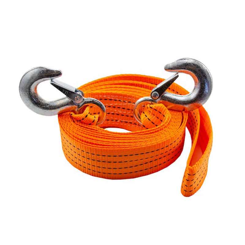 Ανθεκτικός ιμάντας ρυμούλκησης με αντοχή έως 5 τόνους, ιδανικός για την ασφάλεια και την υποστήριξη σε περιπτώσεις έκτακτης ανάγκης στον δρόμο. Διαθέτει μεταλλικούς γάντζους βαρέως τύπου με ασφάλεια για σταθερή σύνδεση μεταξύ οχημάτων.