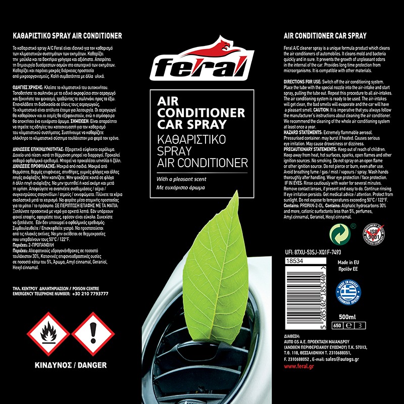 Το καθαριστικό spray air- condition Feral είναι ιδανικό για τον καθαρισμό των κλιματιστικών συστημάτων των οχημάτων.