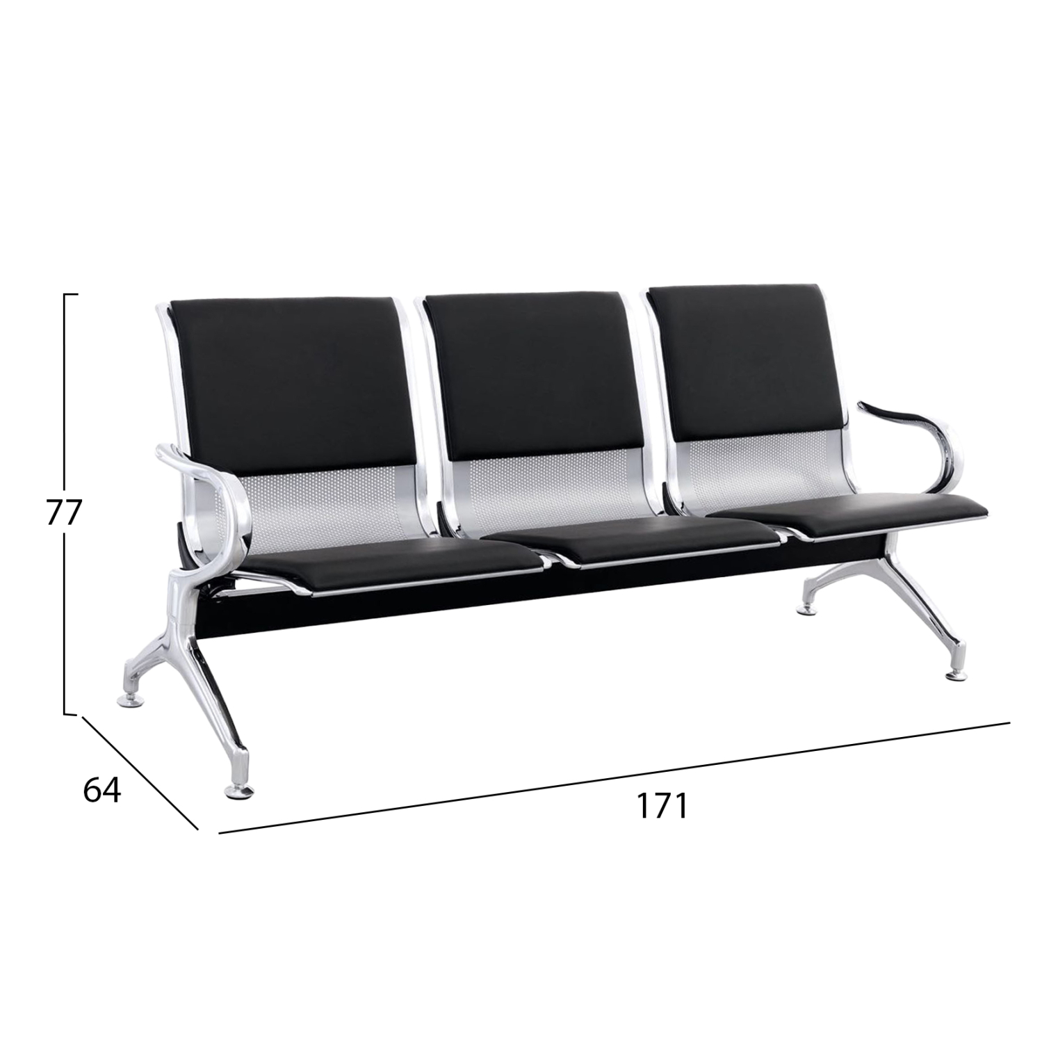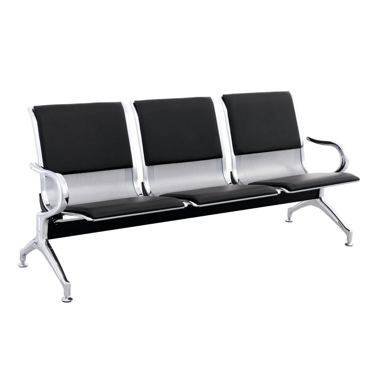 Παγκάκι 3-θέσιο FB918400 τύπου αεροδρομίου με κάθισμα & πλάτη από ΜΑΥΡΟ PU