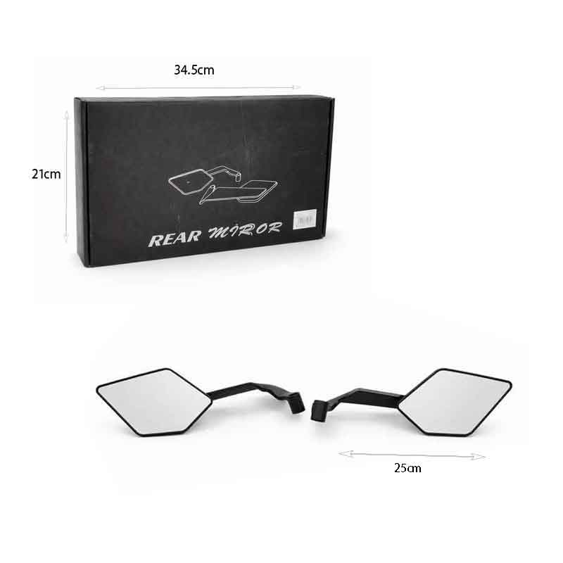 Σετ καθρεφτών μοτοσυκλέτας universal με μοντέρνο πολυγωνικό σχεδιασμό που προσφέρει βελτιωμένη ορατότητα και στυλ. Κατασκευασμένοι από ανθεκτικά υλικά, εξασφαλίζουν σταθερότητα και αντοχή στις καθημερινές συνθήκες χρήσης.