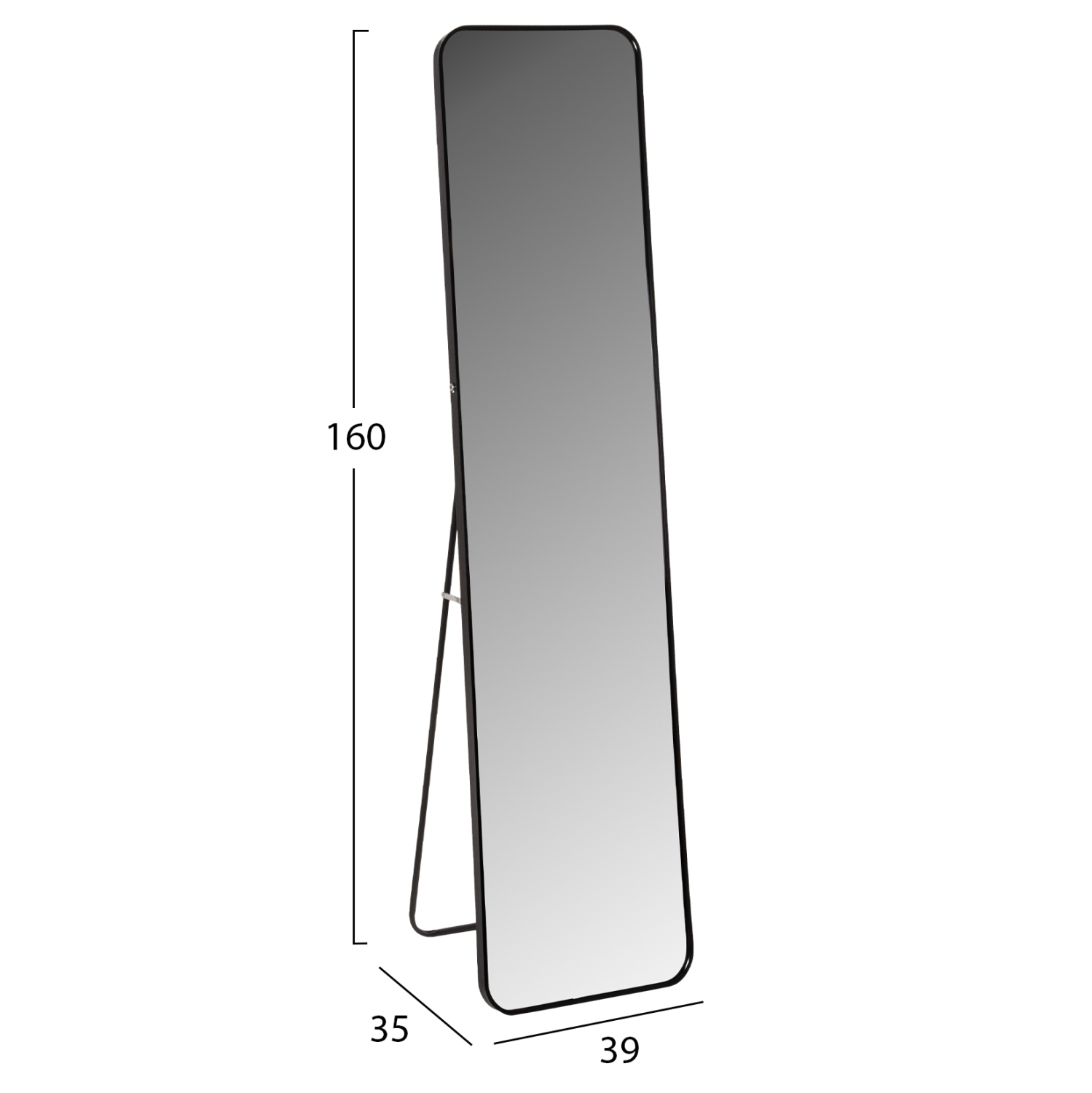 Ο FB99577.01 είναι ένας καθρέφτης δαπέδου με ΜΑΥΡΟ σκελετό, κομψός και σε άκρως ικανοποιητική διάσταση. Ένα χρήσιμο «εργαλείο» για κάθε δωμάτιο που θα ταιριάξει με την διακόσμηση σας, είτε είναι κλασική είτε πιο μοντέρνα. Η στήριξη γίνεται με μια πτυσσόμενη αλουμινένια διάταξη. Ο καθρέφτης είναι ορθογώνιος με στρογγυλεμένες γωνίες και «πατάει» όμορφα στο δάπεδο.